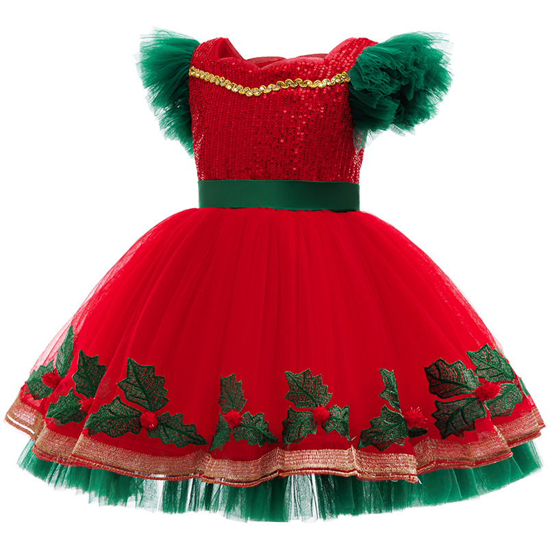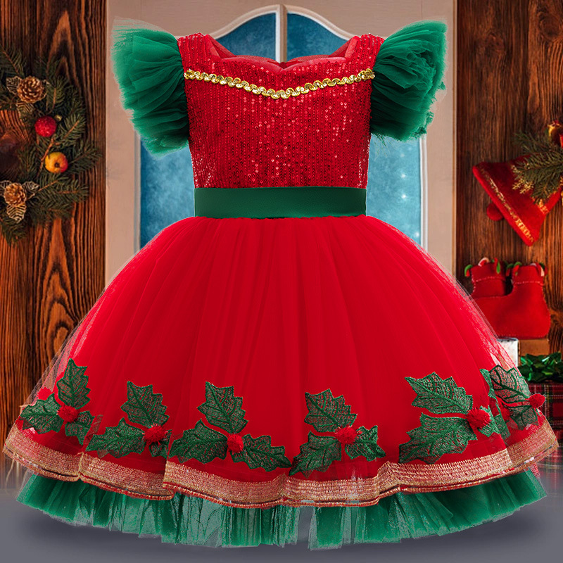 Children's Color-blocking Princess Dress With Lace For Older Kids