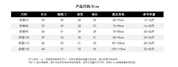 Suitable height: clothing label 73, clothing label 80, clothing label 90, clothing label 100, clothing label 110, clothing label 120