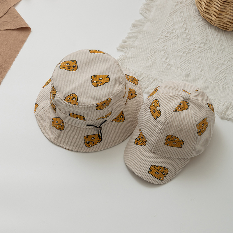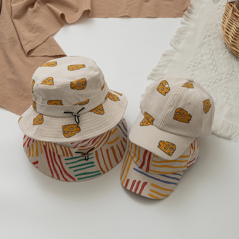 Color: cheese print baseball cap, cheese print bucket hat, Rainbow printing baseball cap, Rainbow printing bucket hat