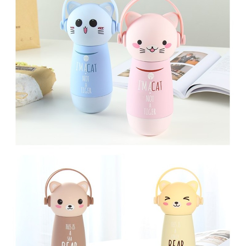 Color: earphone cat thermos cup blue, earphone cat thermos cup yellow, earphone cat thermos cup brown, earphone cat thermos cup pink