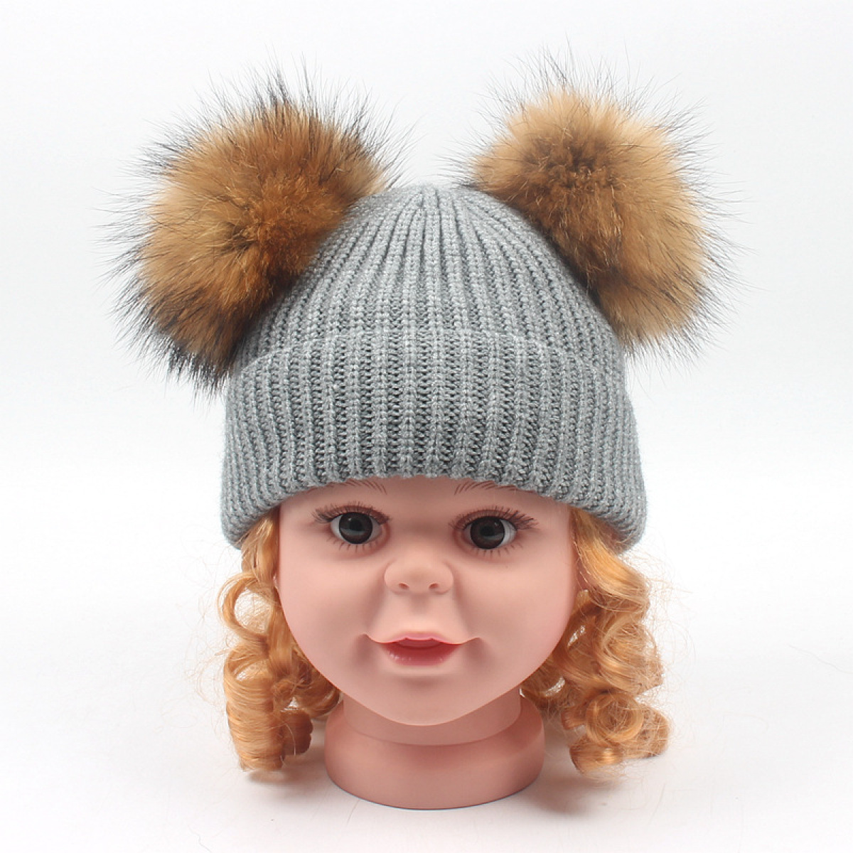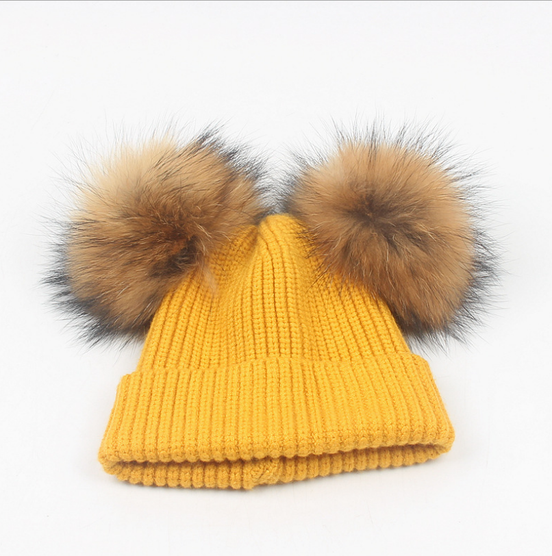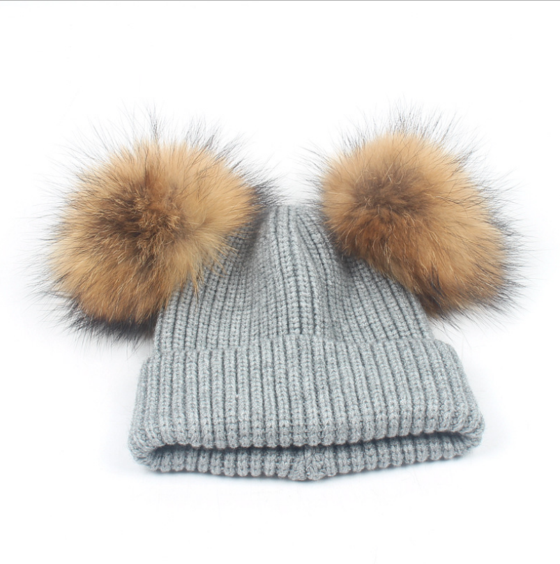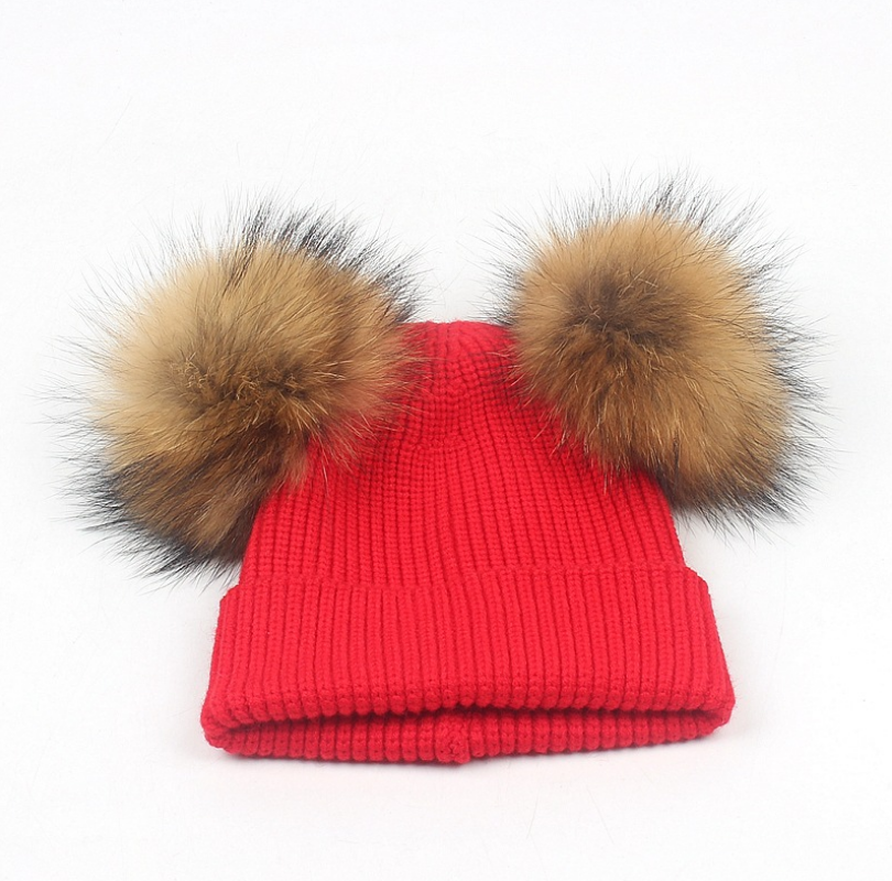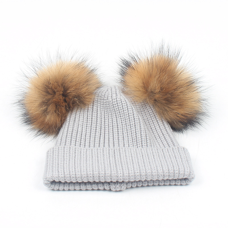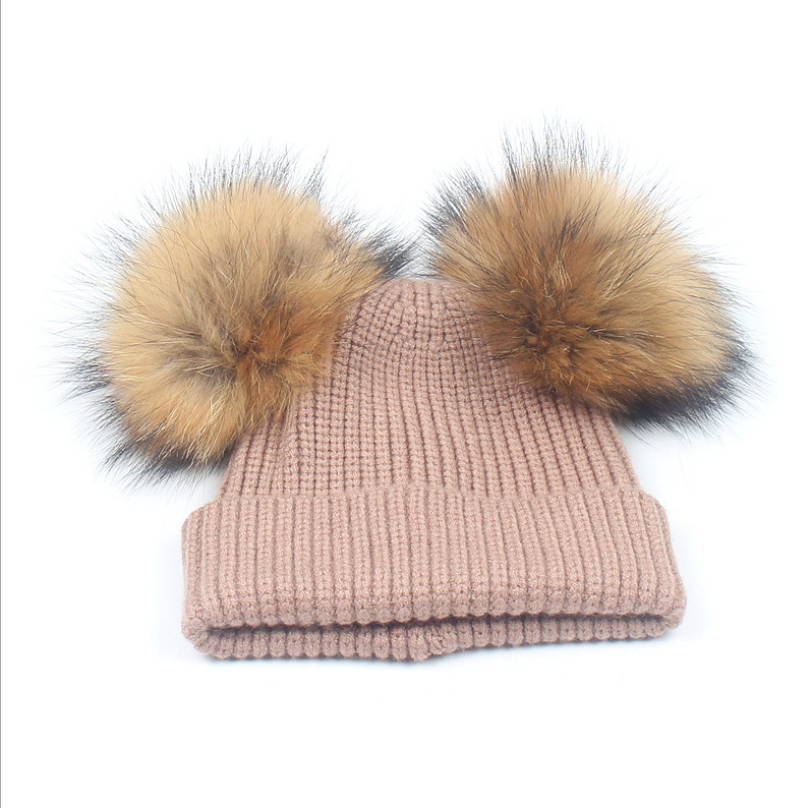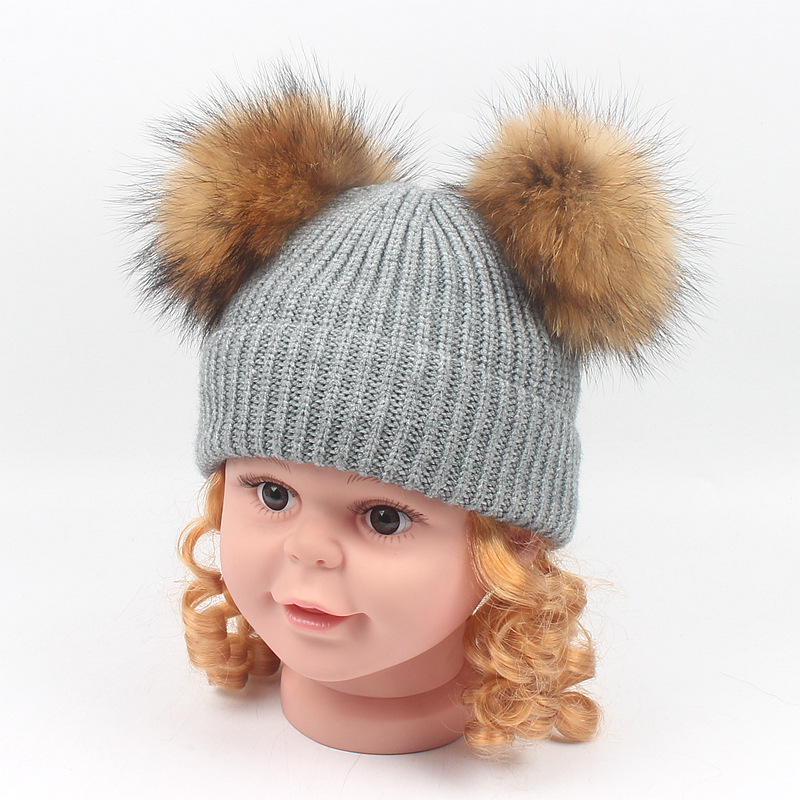 [product name]: children's double hair ball knit hat