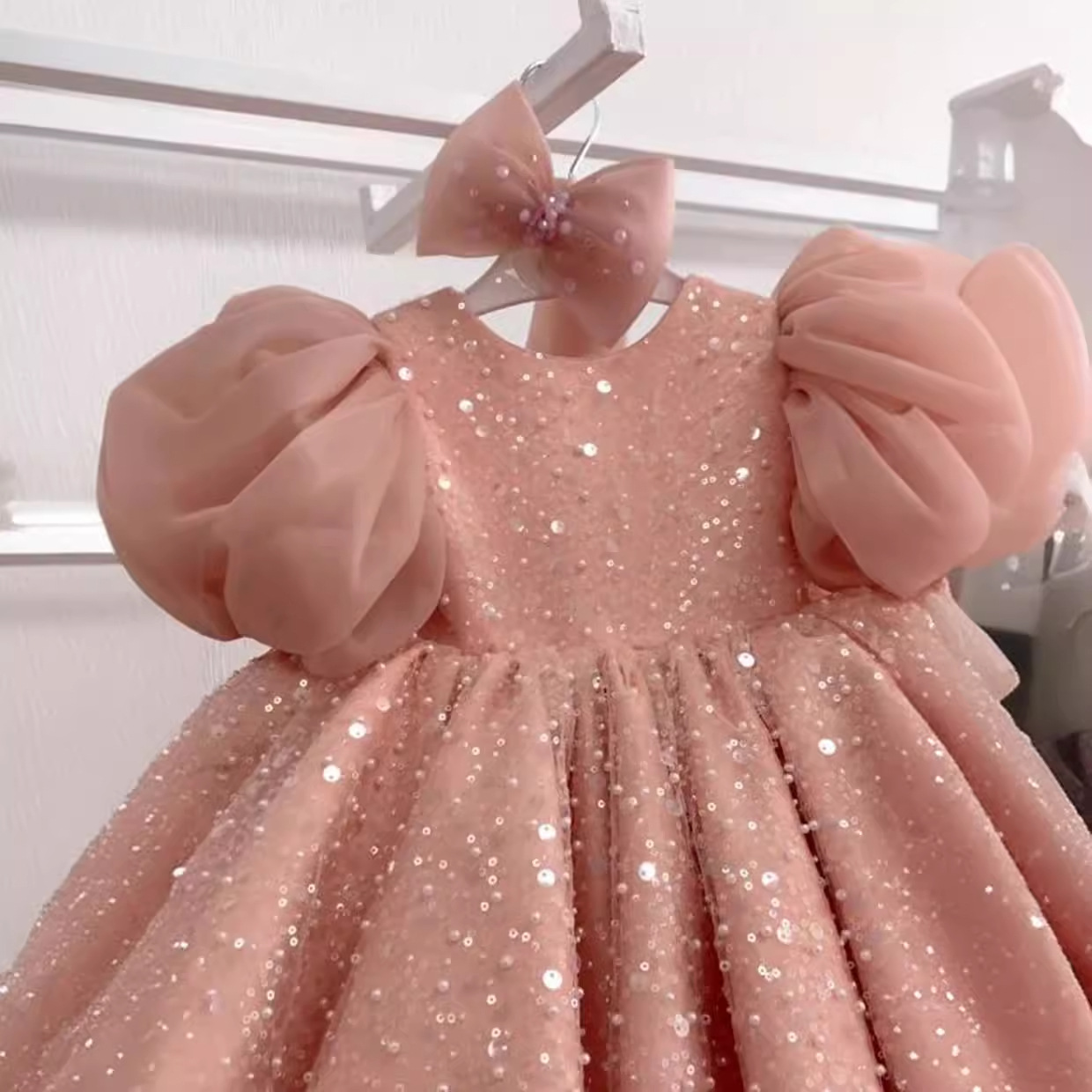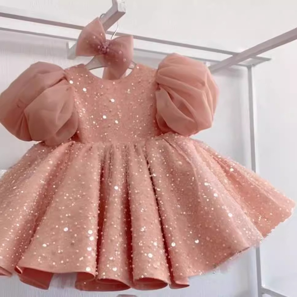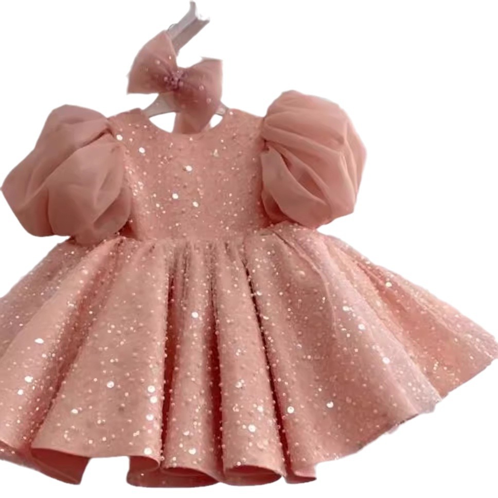 Children's Dress Sequined Big Puff Sleeve Western Style Flower Girl Baby Girl