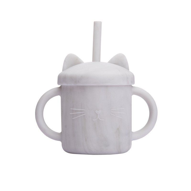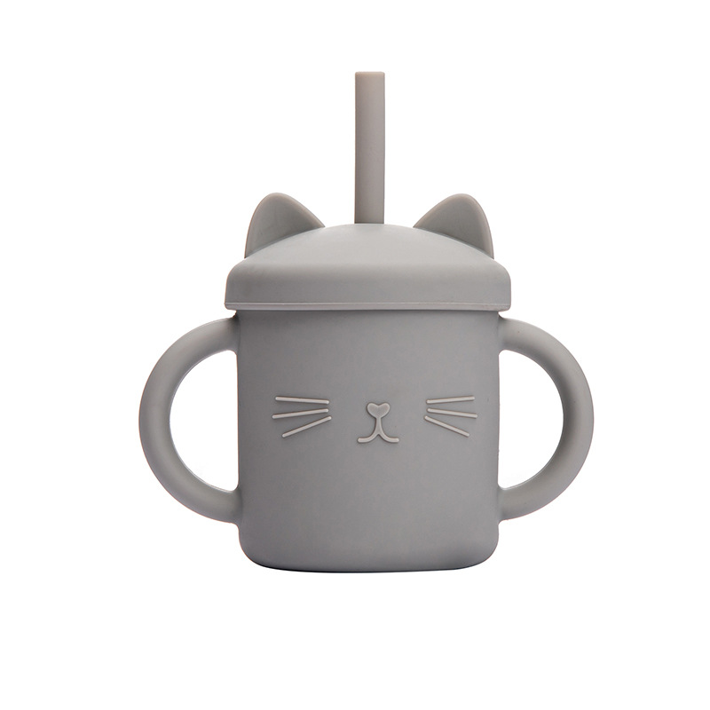 Children's Drinking Cups, Food-grade Silicone Household Straight-drinking Type With Straws, Baby Anti-choke Drinking Cups