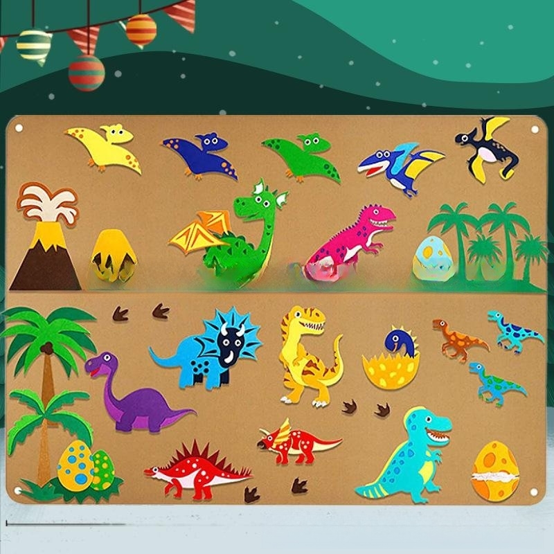 Children's Early Education 3DIY Three-dimensional Felt Game Pack Story Board Learning Board Printing Dinosaur Animal