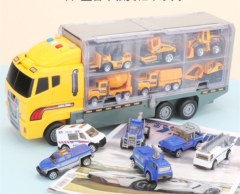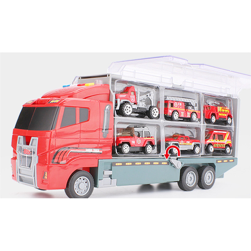 Children'S Educational Alloy Storage Fleet Engineering Fire-Fighting Military Vehicle Model Simulation Container Truck With Sound And Light Story