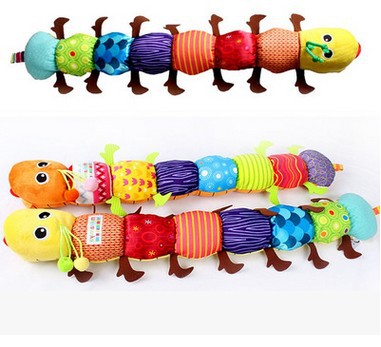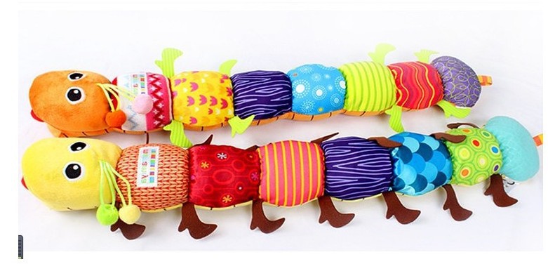 The cute insects have cute shapes, bright colors, and many functions: there is a music IC inside the insect’s head, and music will sound when pressed; the insect’s body is equipped with rattles, ring papers, BB devices, and fabrics. Different colors, very suitable for babies over 3 months to play, exercise vision, touch and hearing and other sensory hair