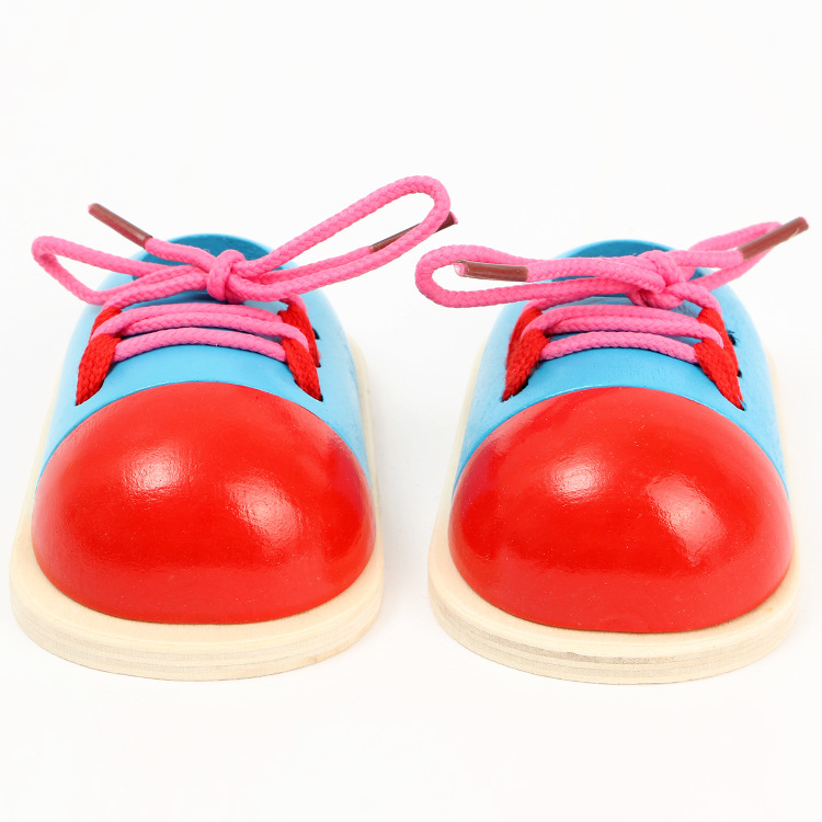 Children's educational wooden shoes toys kindergarten early education threading props to tie shoelacesMaterial : wood