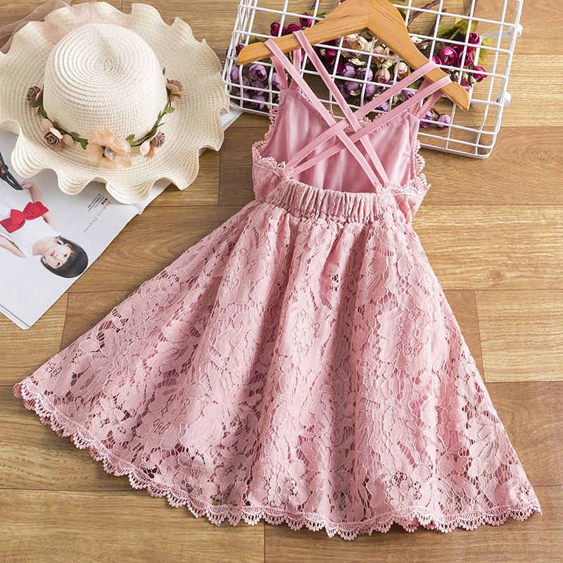 Children's Embroidered Skirt Lace Dress With Suspenders And Beautiful Back