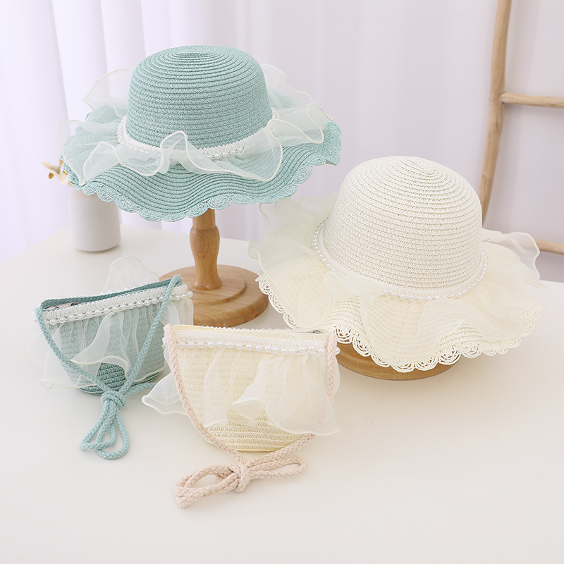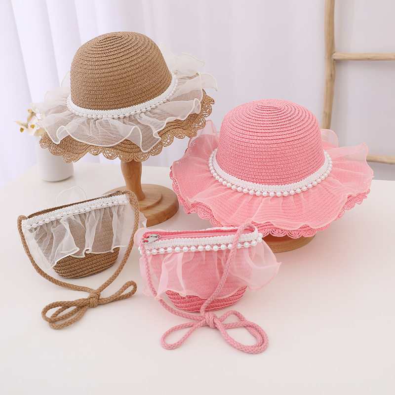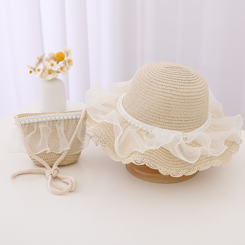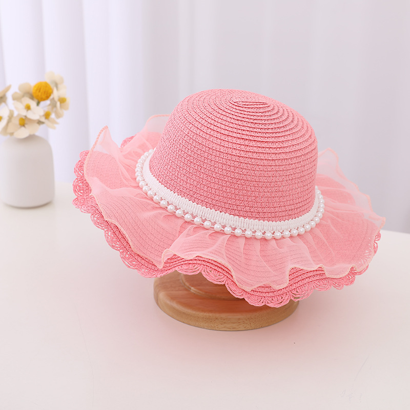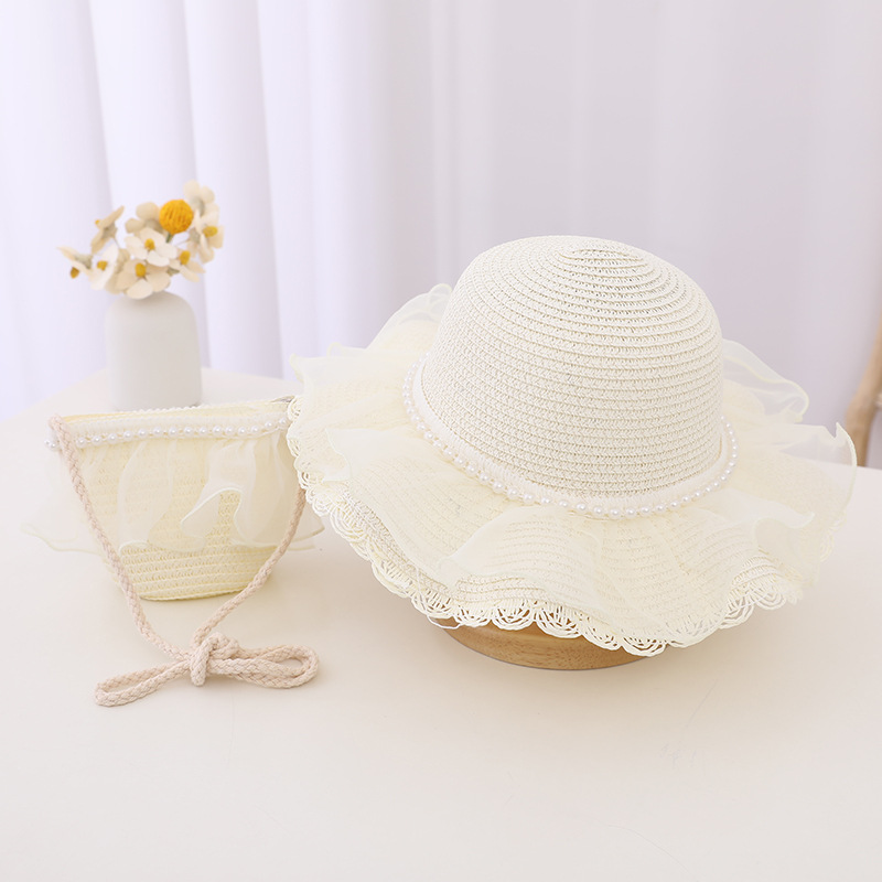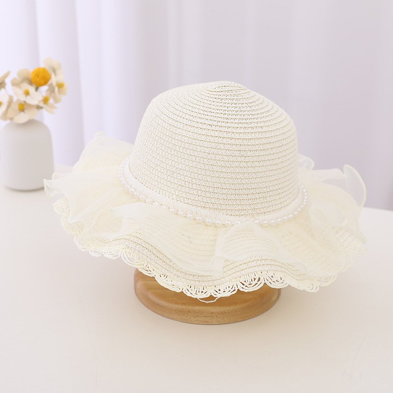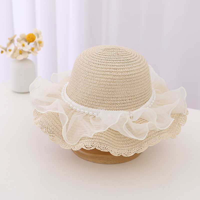 Material: straw + lace mesh + pearl