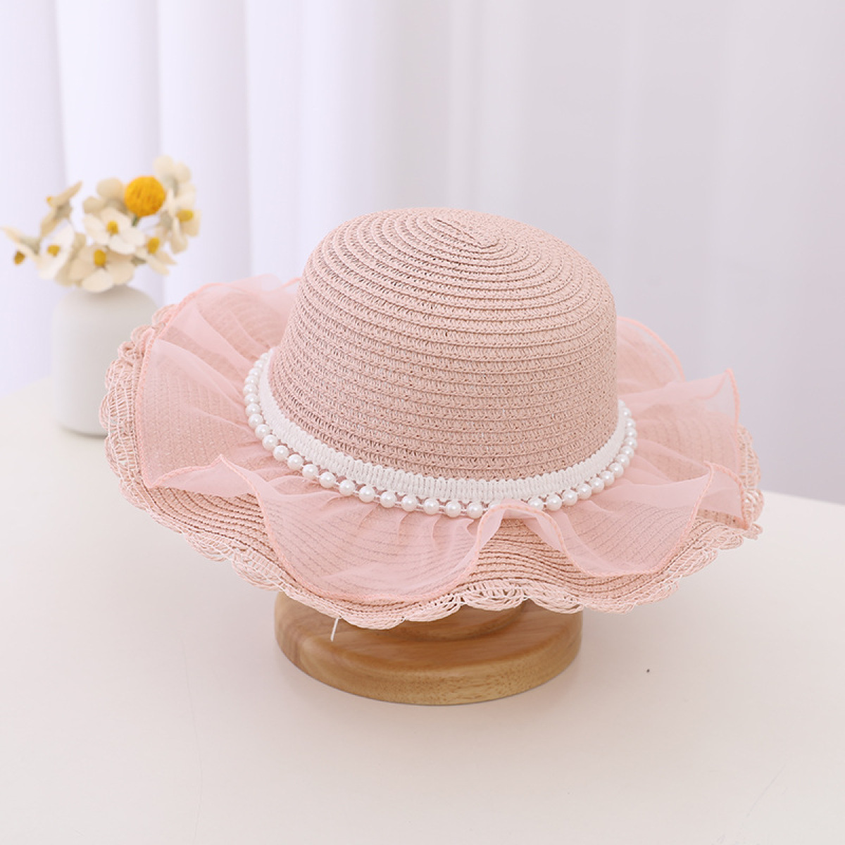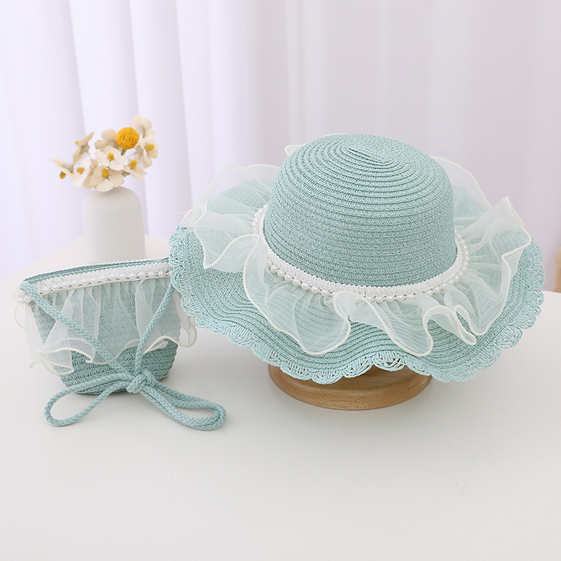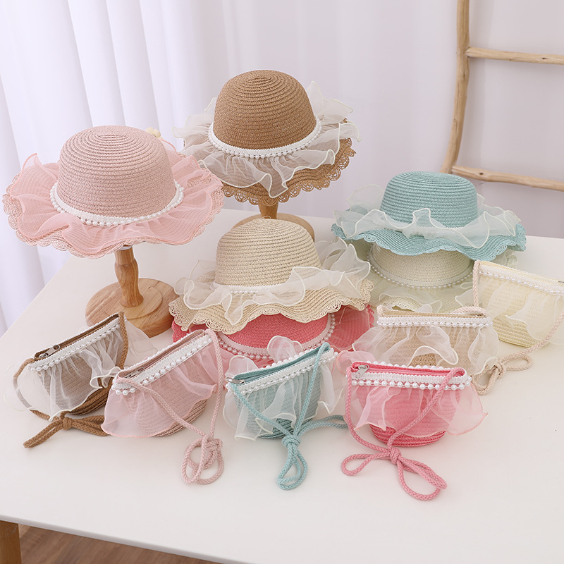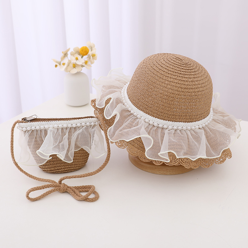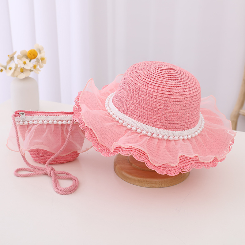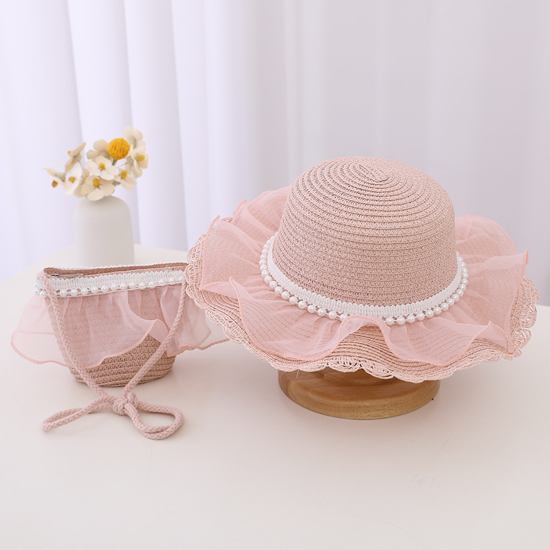 Material: straw + lace mesh + pearl