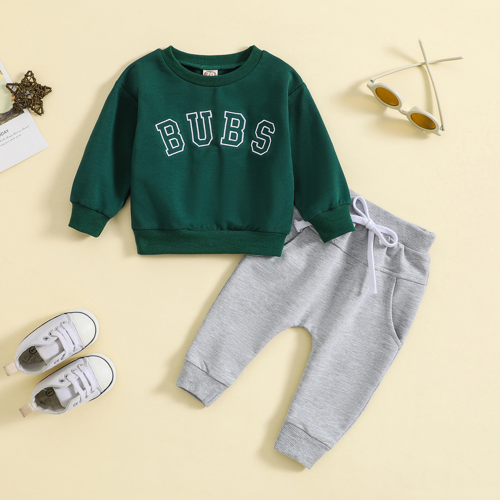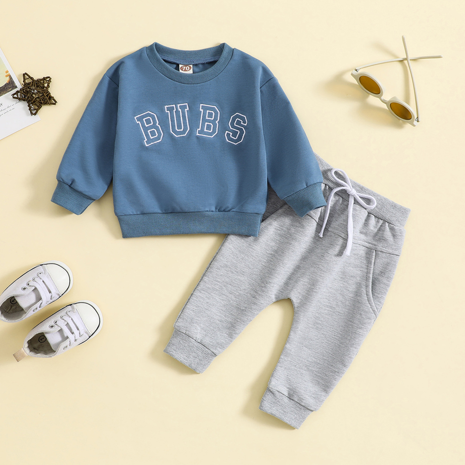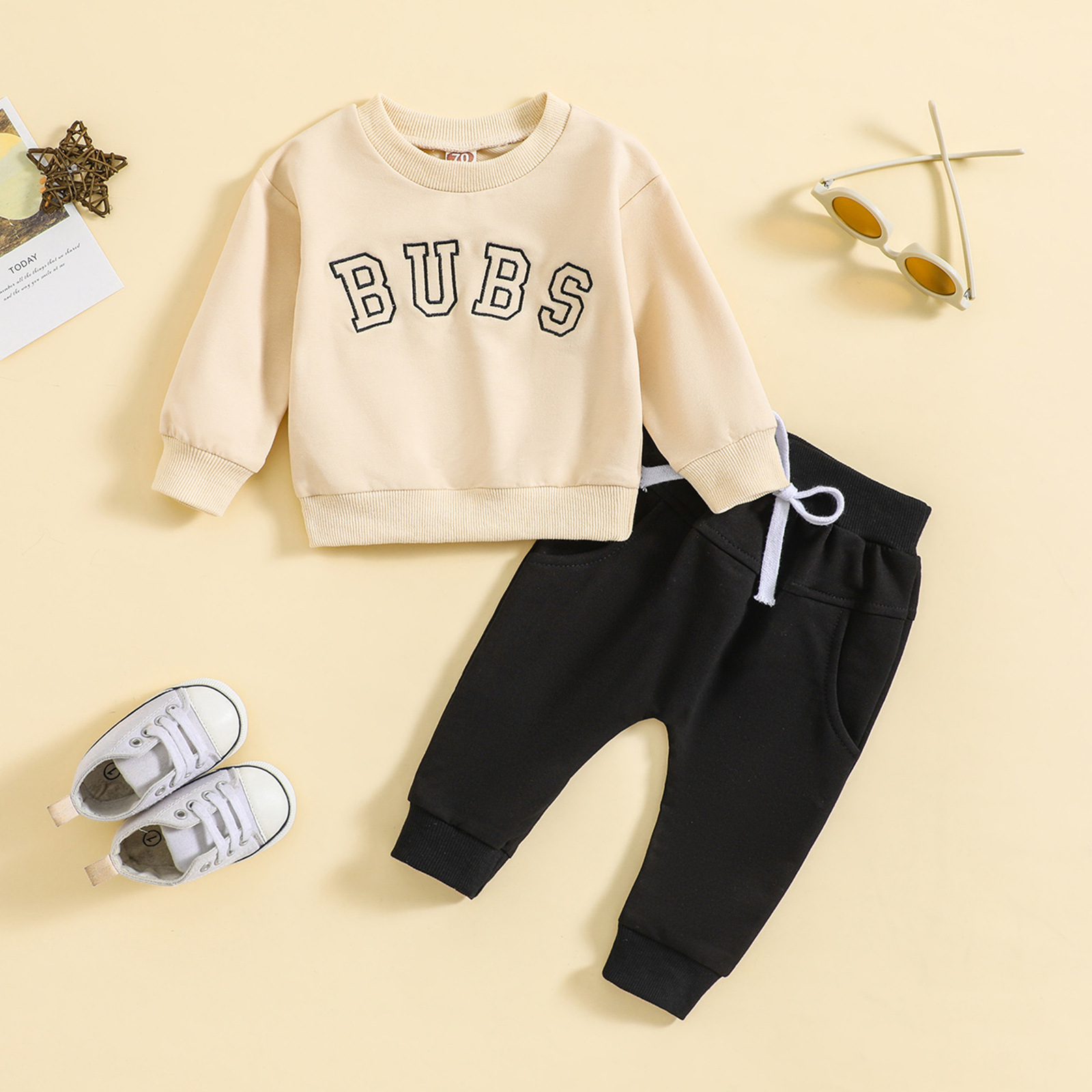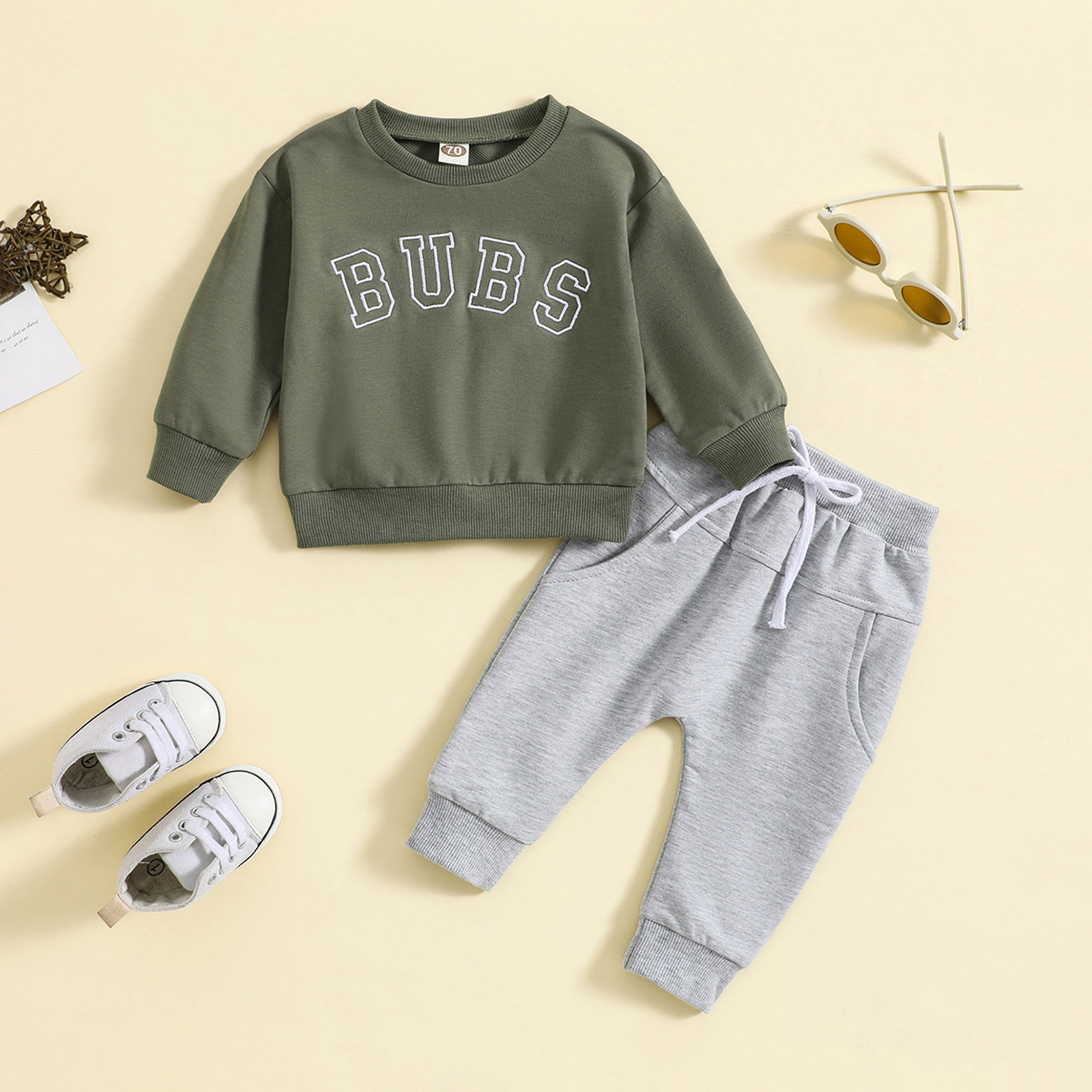 Children's Fashion Round Neck Alphabet Embroidery Long-sleeved Sweater Solid Color Trousers Suit
