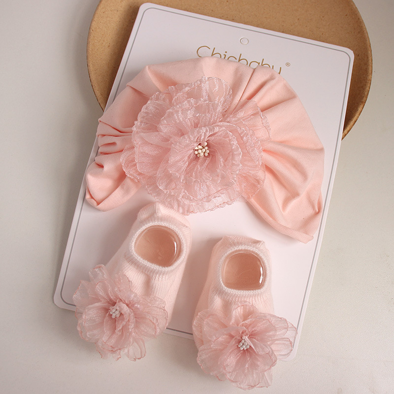 Color: 24 pink hat pink thin feather flower socks, 24 pink hat beige thin feather flower socks