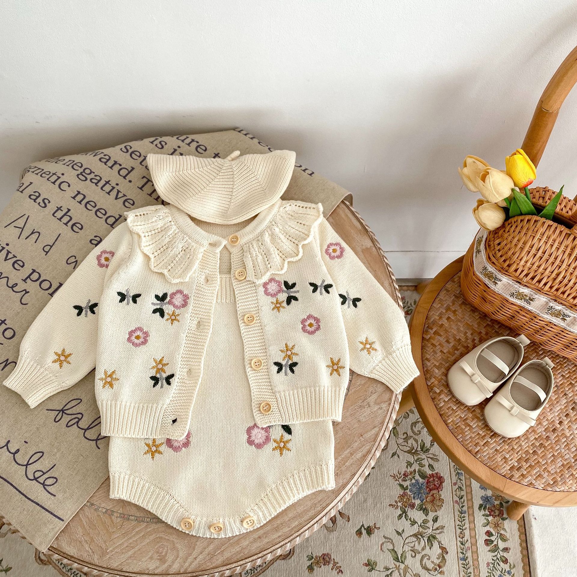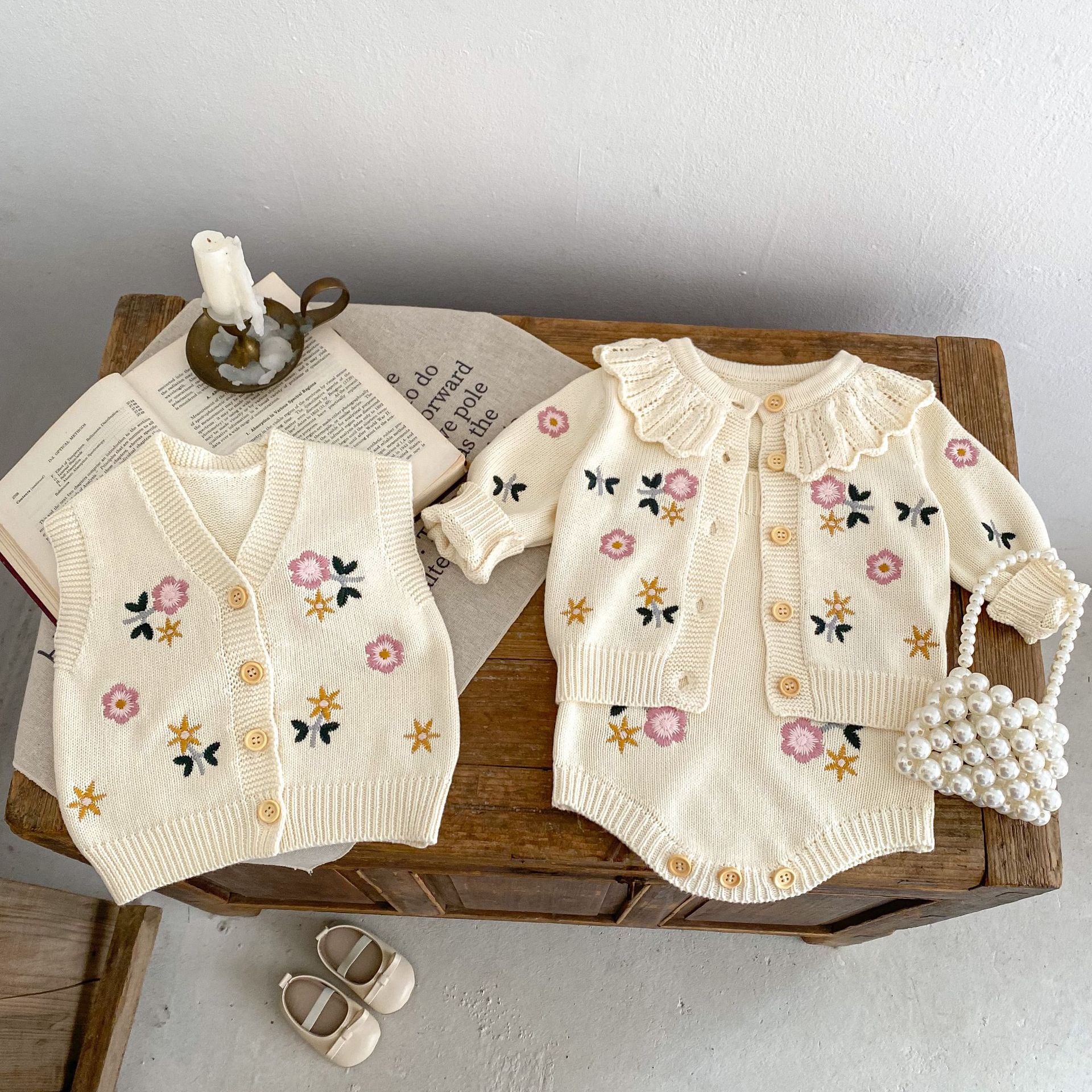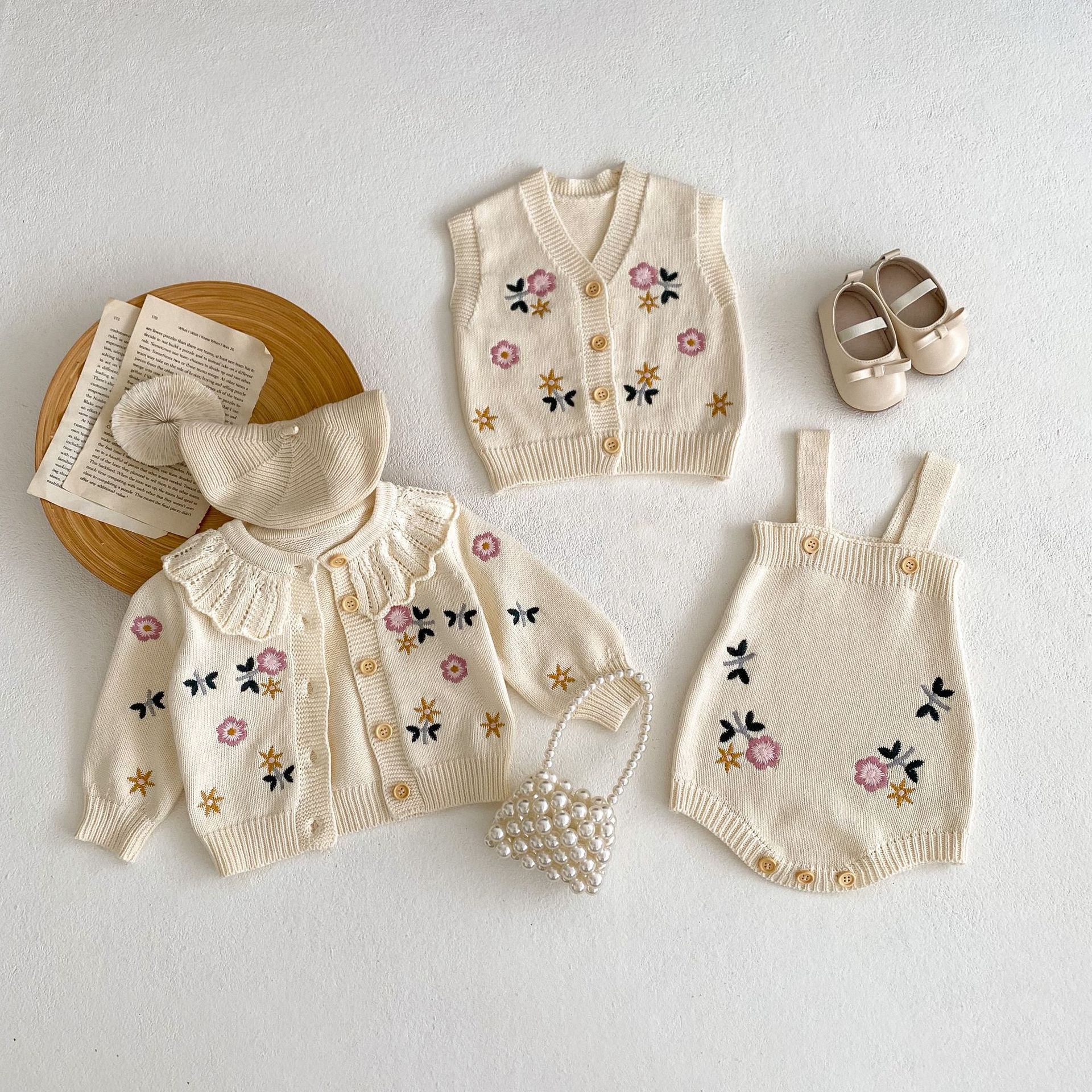 Color: apricot White, romper, vest