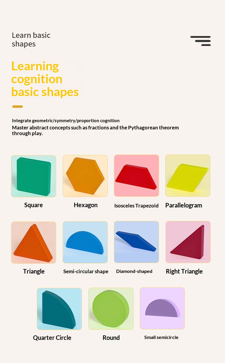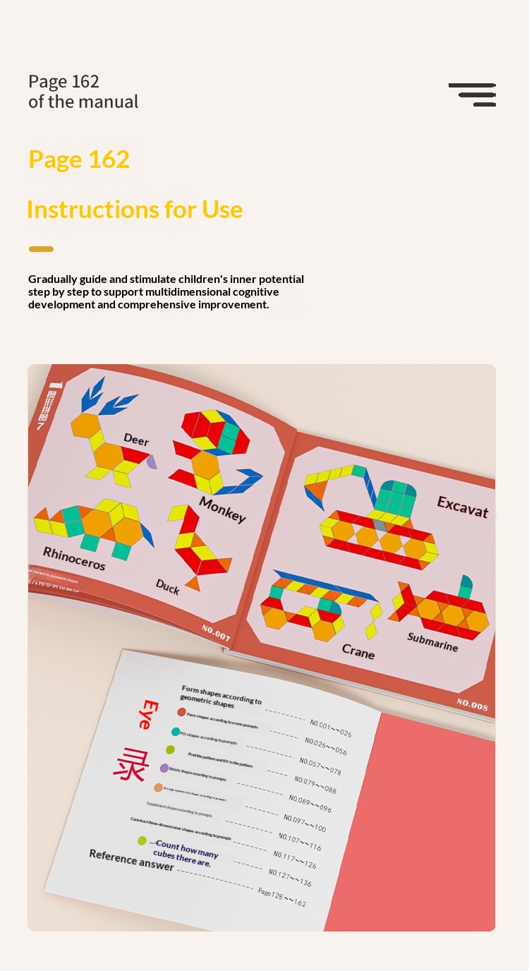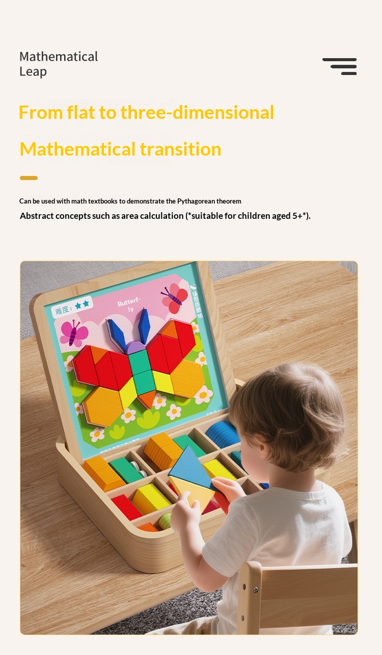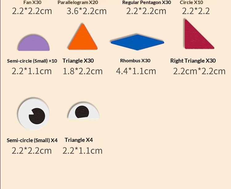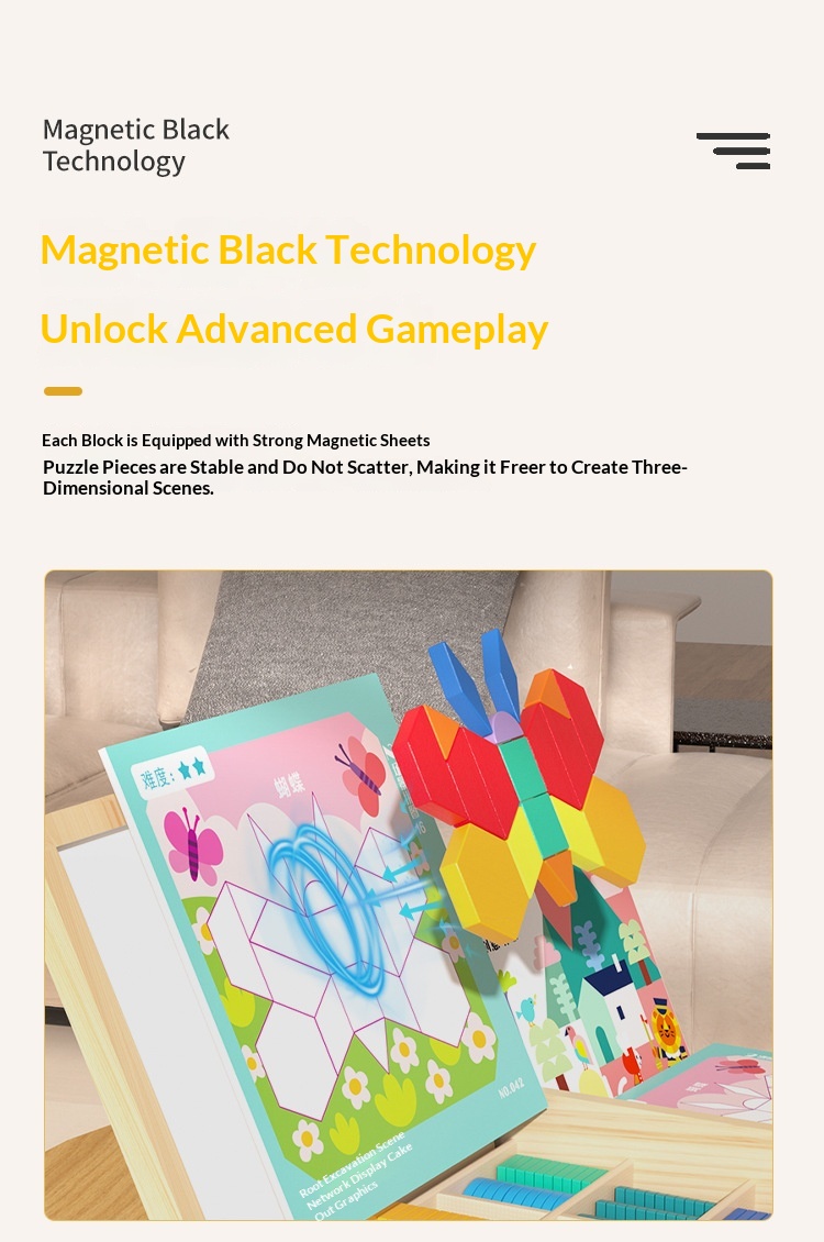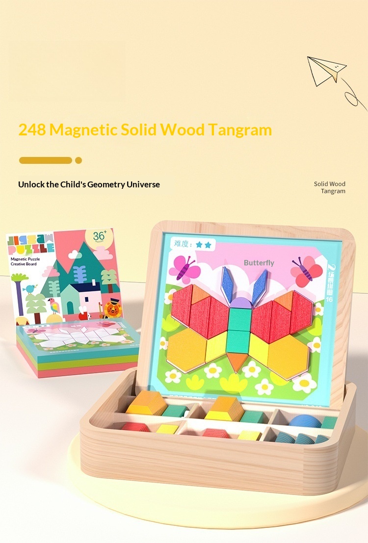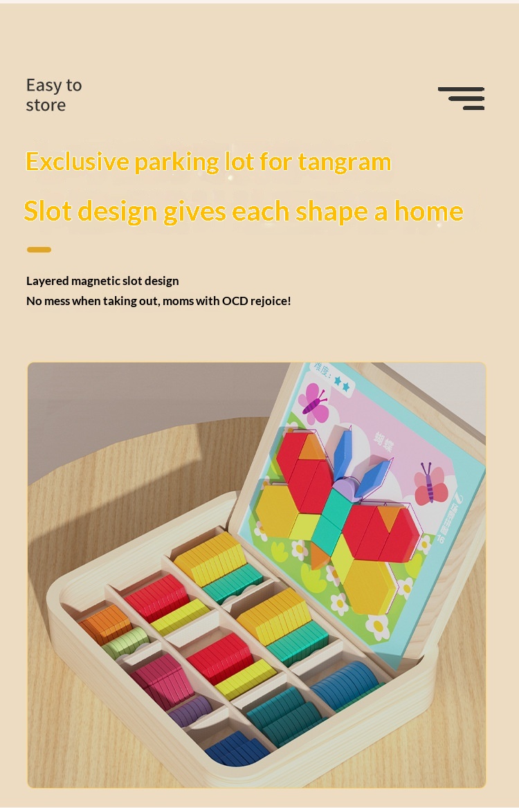 Color: 160-piece magnetic geometric tangram puzzle with 30 double-sided challenge cards