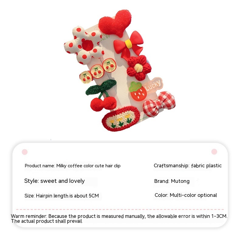 Process: fabric+plasticStyle: Sweet, cute, and versatileSize: Hair clip length approximately 5cmColor: Available in multiple colors