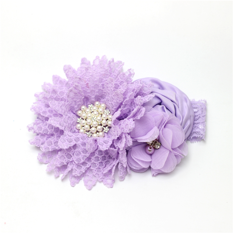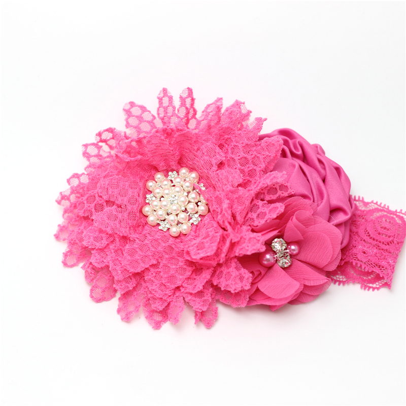 Children's headband with flower, chiffon, color, rose, elastic lace headband, hot seller in Europe and America