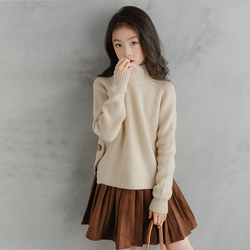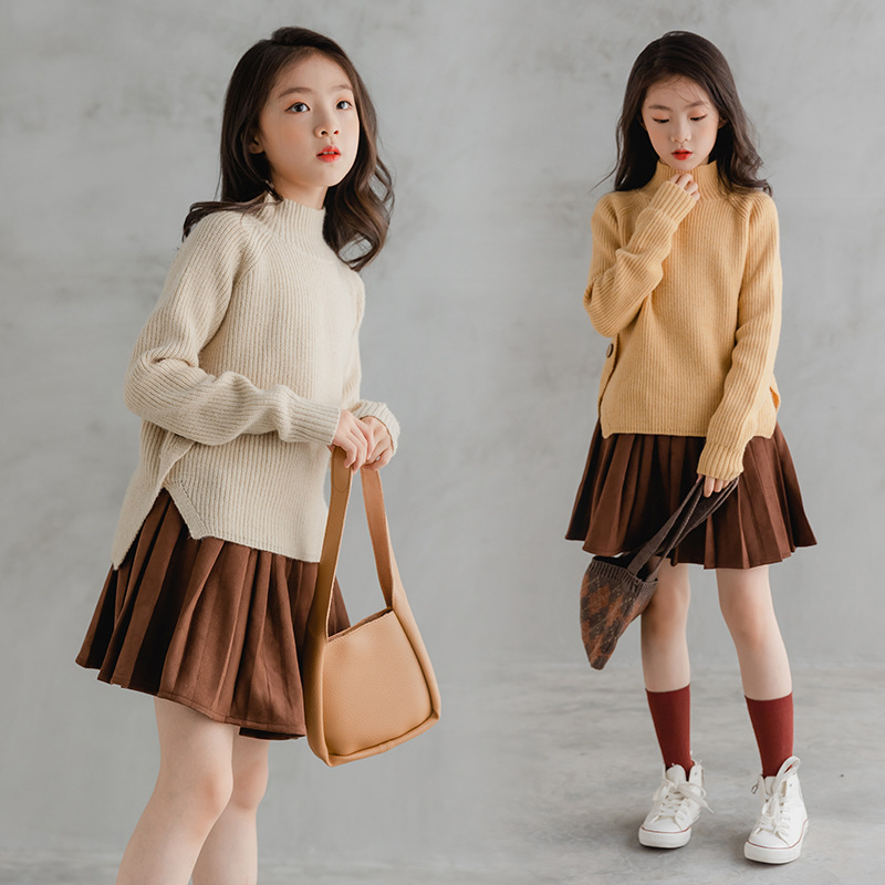 Color: 3269 slit sweater yellow, 3269 slit sweater apricot, pleated skirt, coffee color