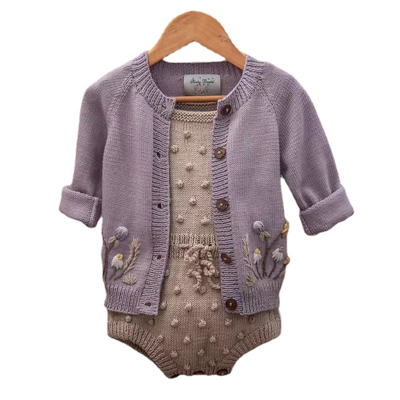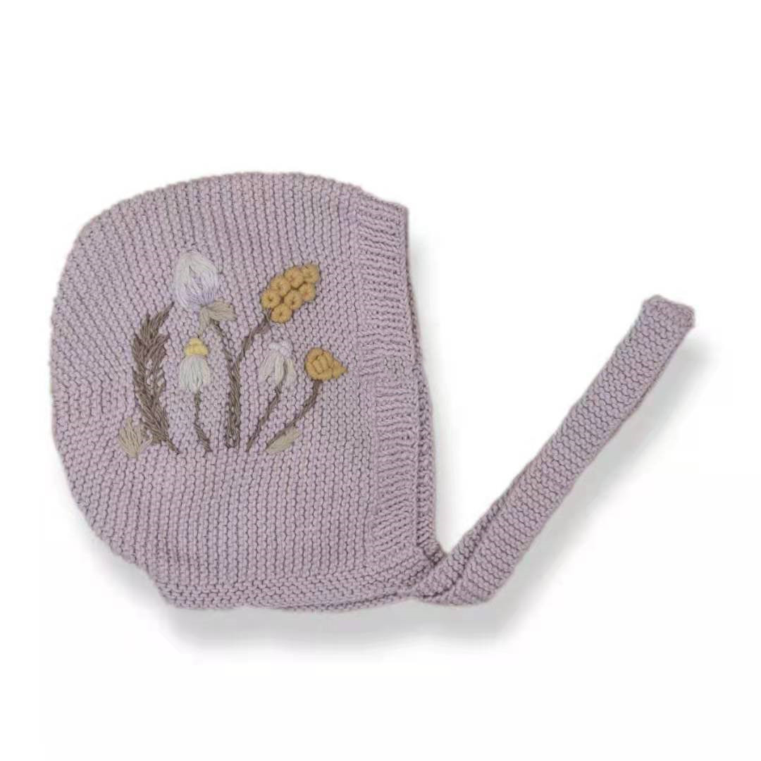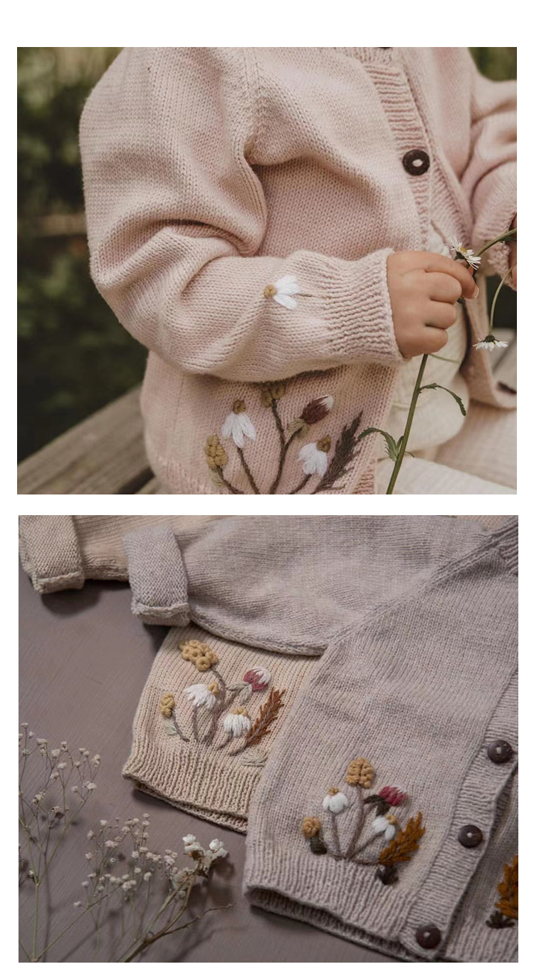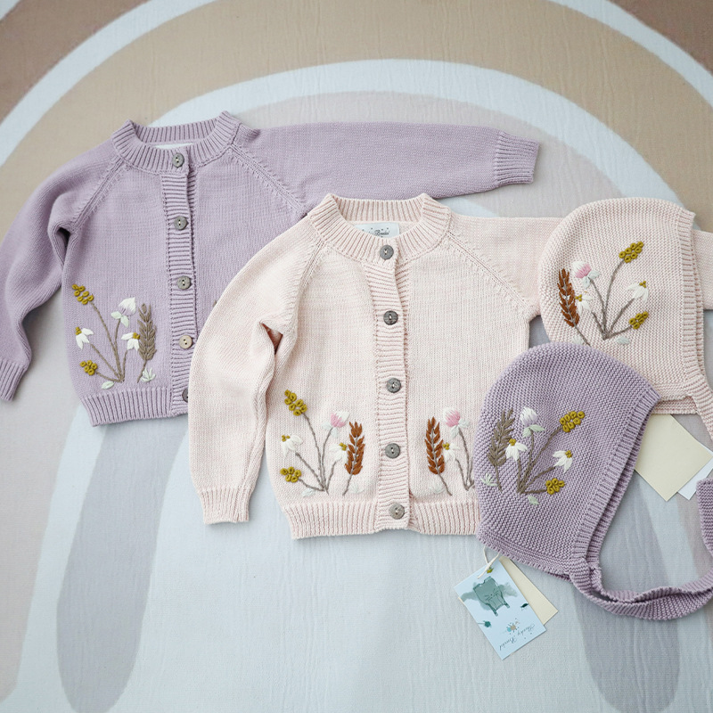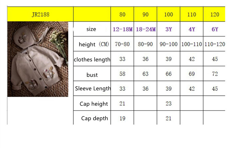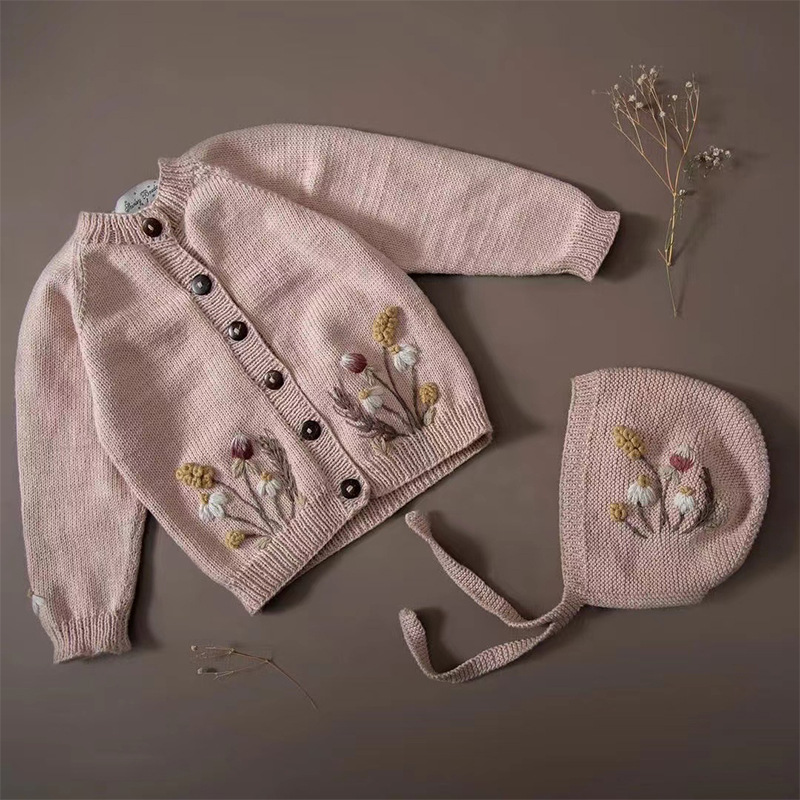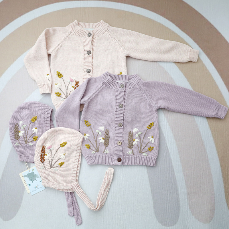 Color: pink cardigan hand-embroidered sweater, pink hat, purple cardigan hand-embroidered sweater, purple hat