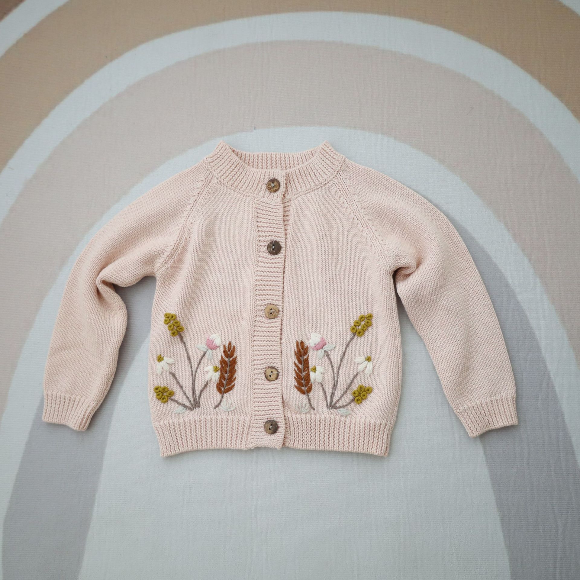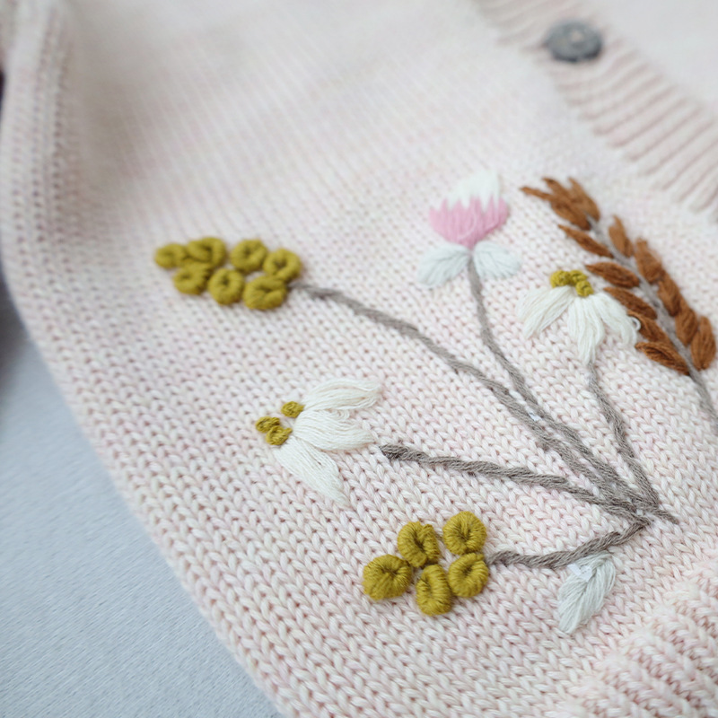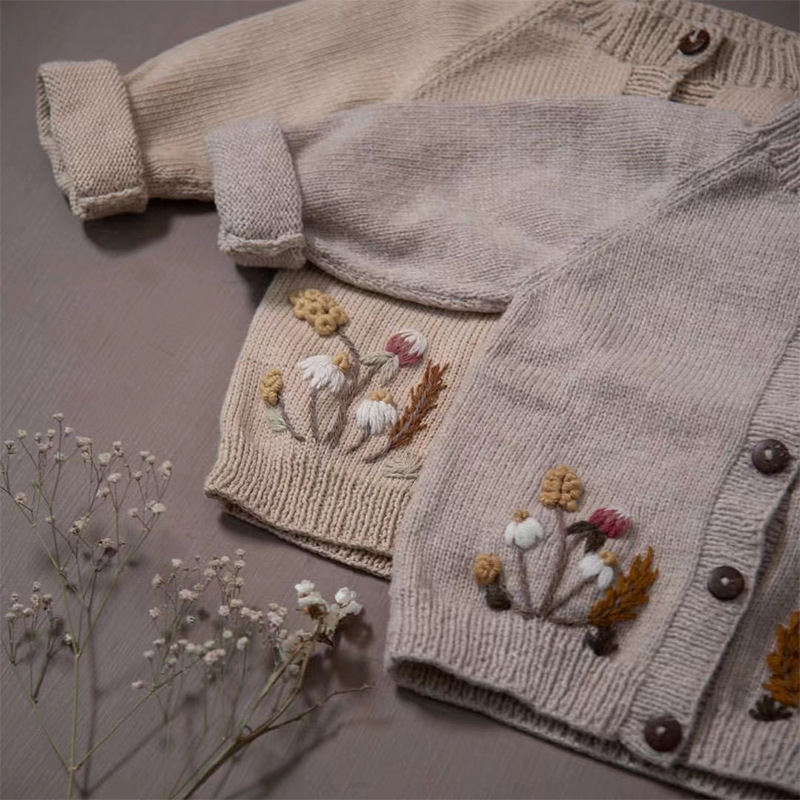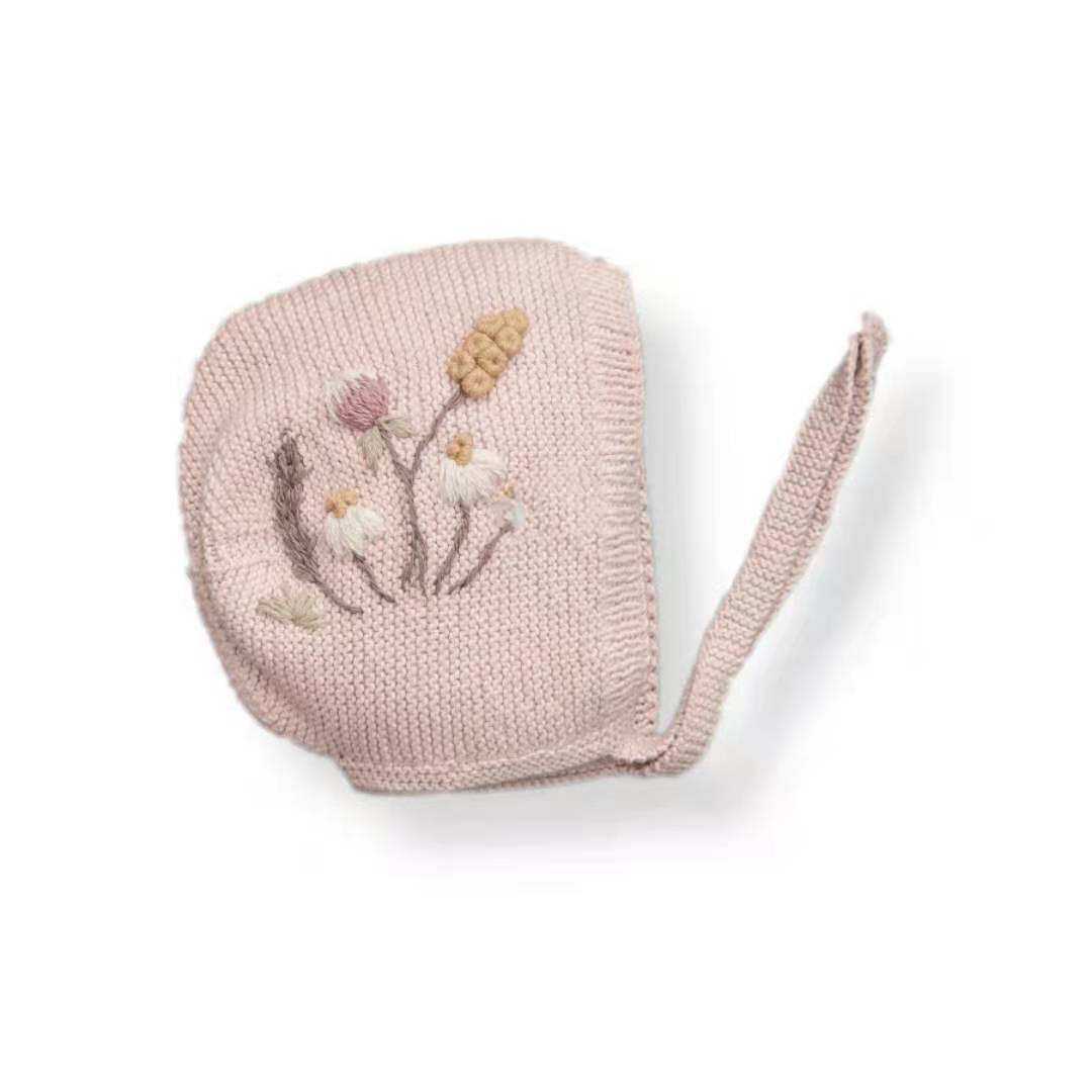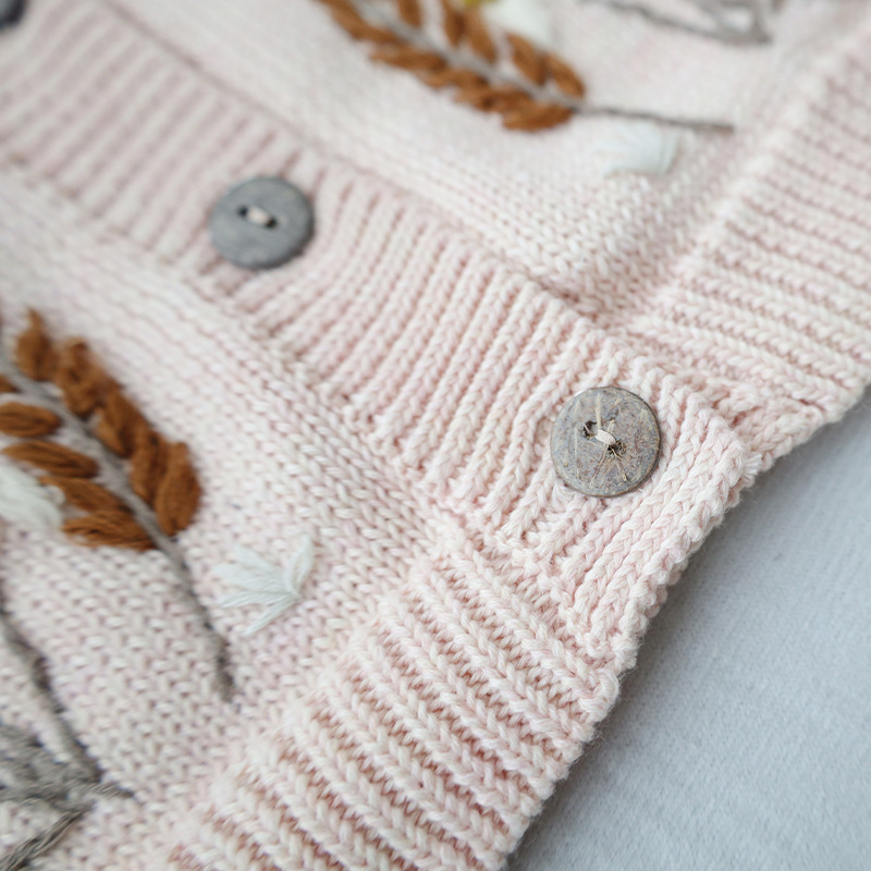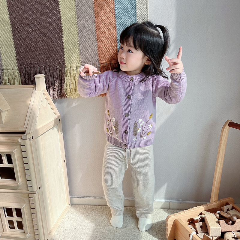 Color: pink cardigan hand-embroidered sweater, pink hat, purple cardigan hand-embroidered sweater, purple hat