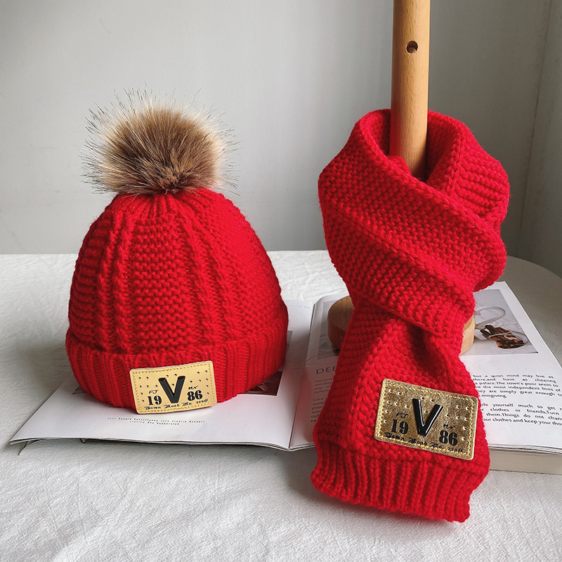 Color: V-shaped cap yellow+yellow scarf+gloves, V-shaped cap pink+pink scarf+gloves, V-shaped cap blue+blue scarf+gloves, V-shaped cap black+black scarf+gloves, V-shaped cap red+red scarf+ Gloves