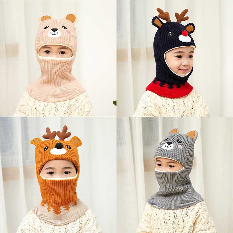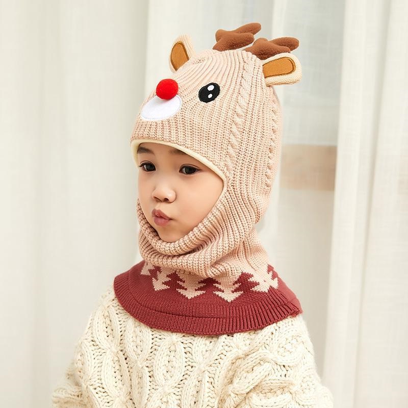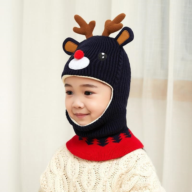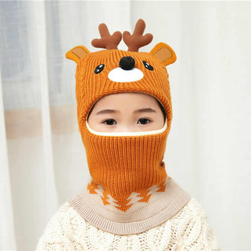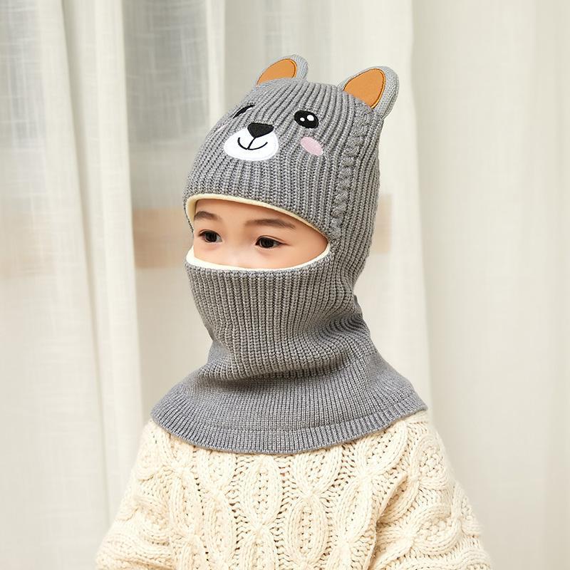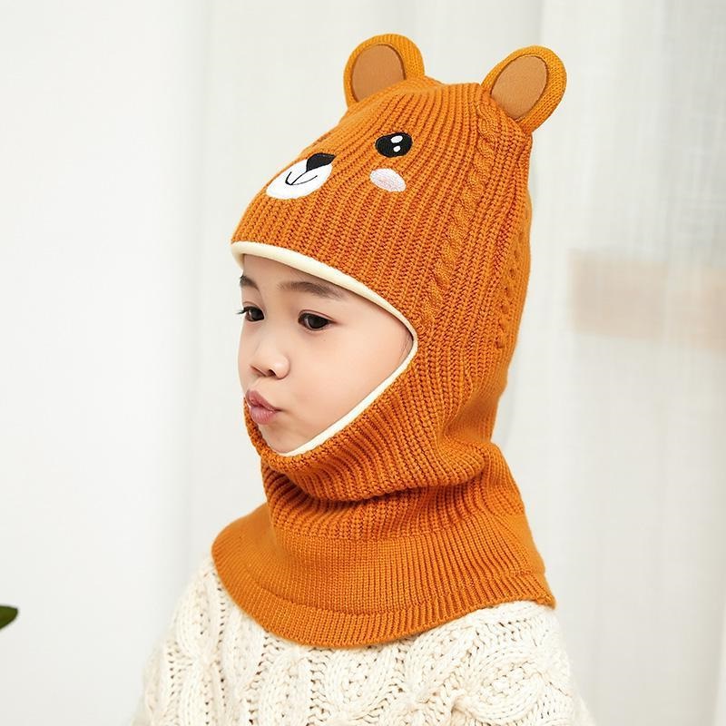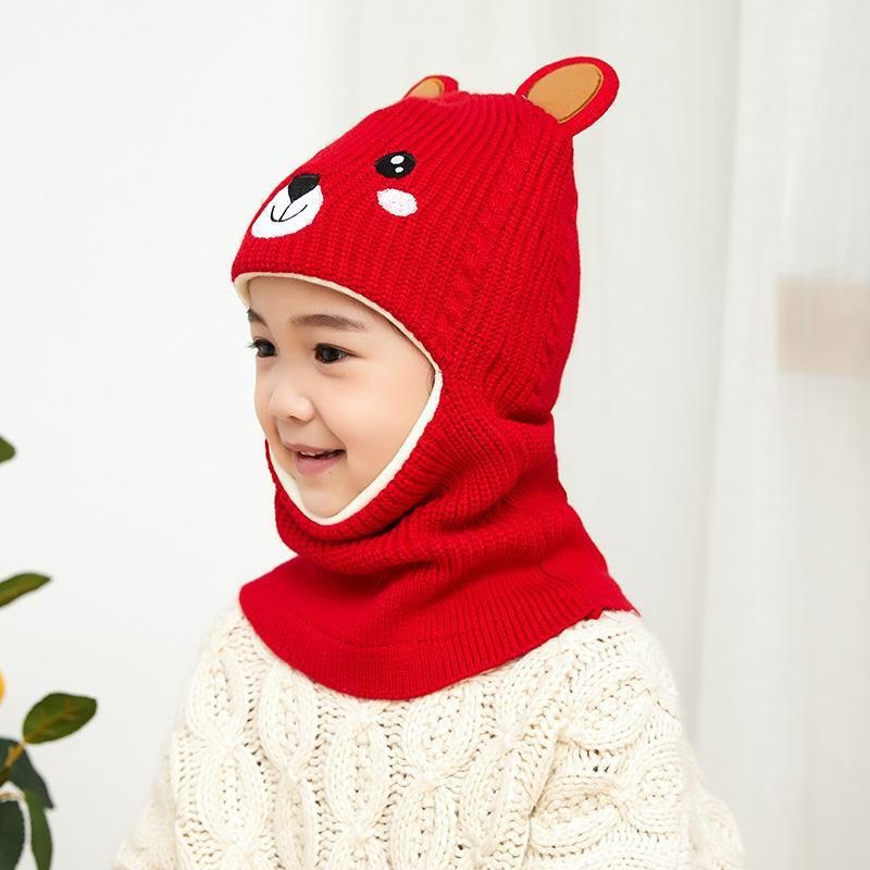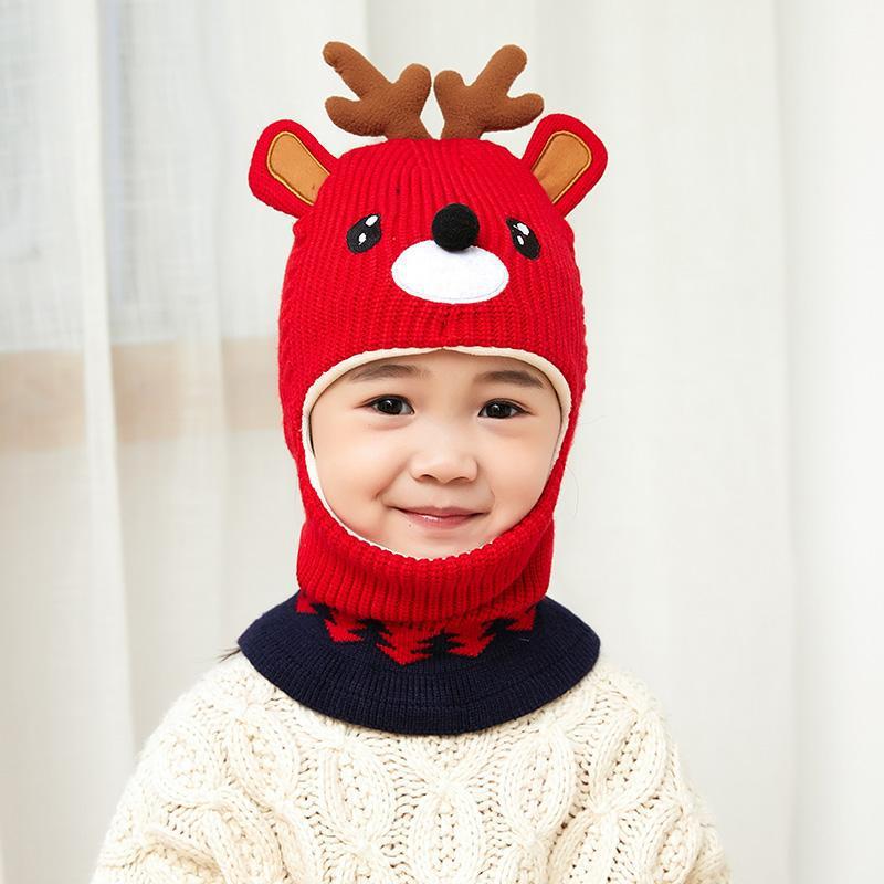 Children's Hat Plus Velvet Ear Protection Bib One-piece Cap