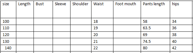 100cm, 110cm, 120cm, 130cm, 140cm, 150cm