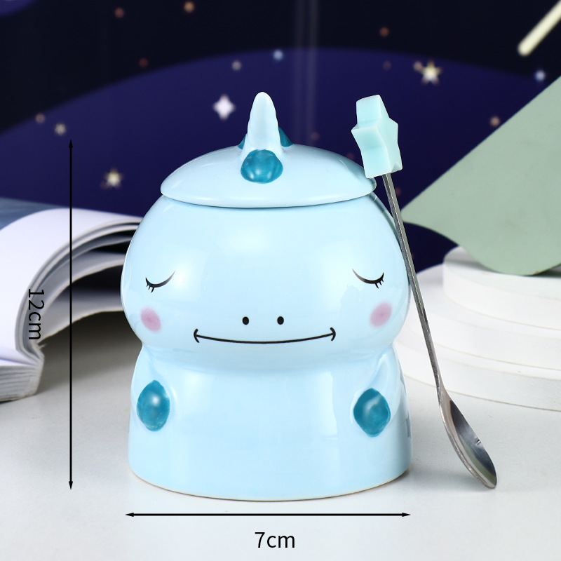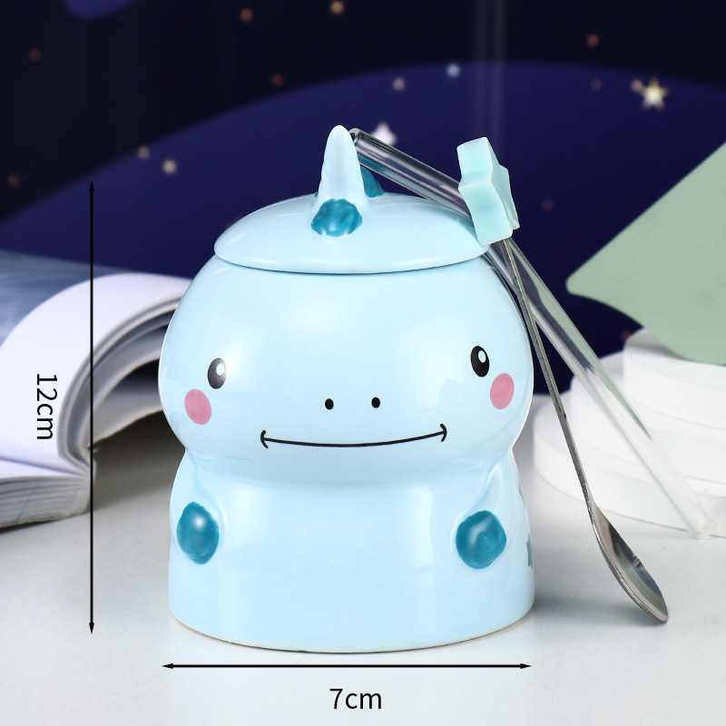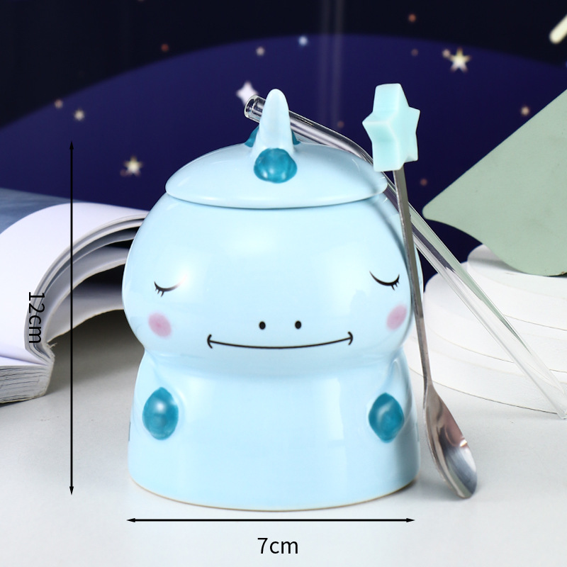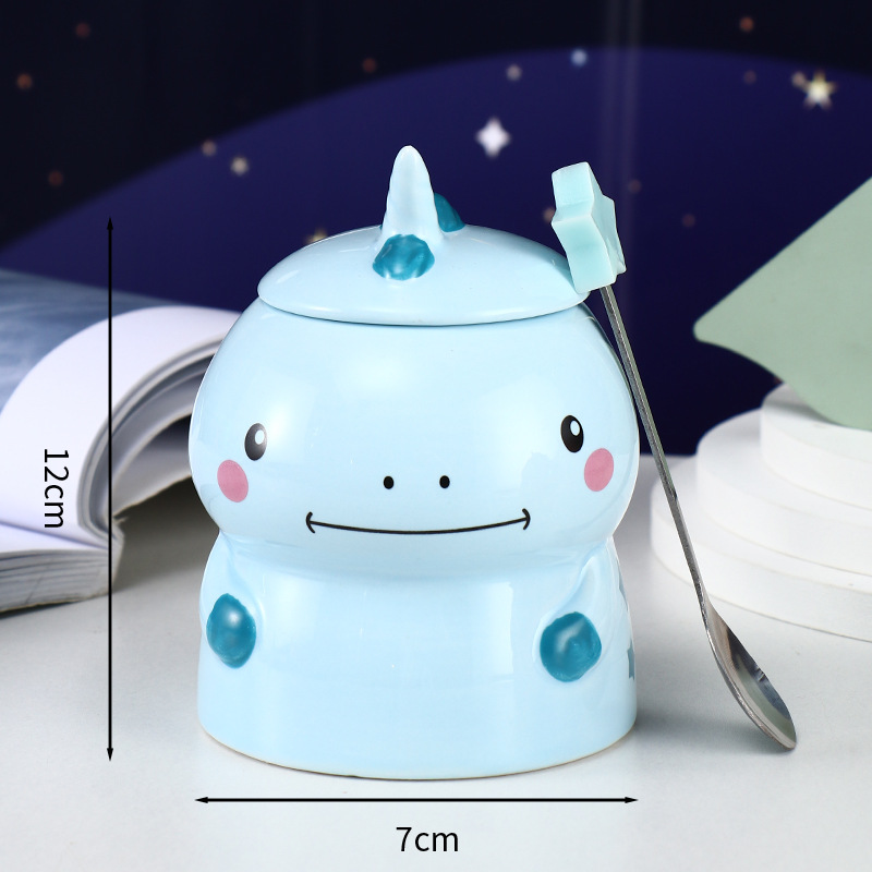 6 Style: cute little dinosaur (cover + star spoon + straw) blue A/401-500ml