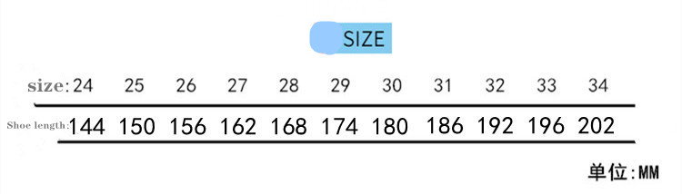 Size: 24, 25, 26, 27, 28, 29, 30, 31, 32, 33, 34