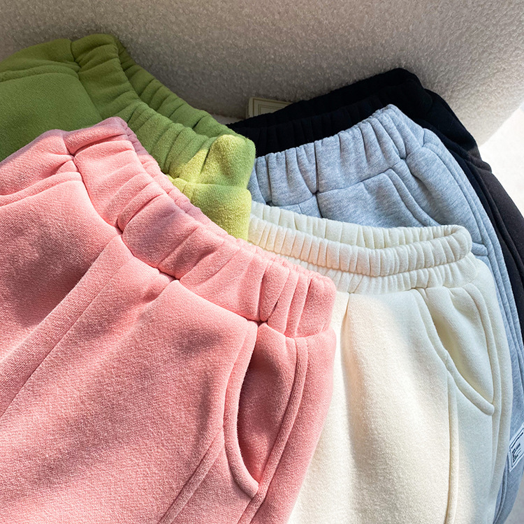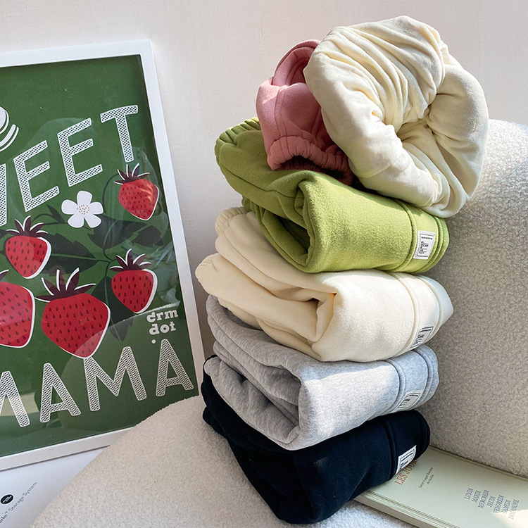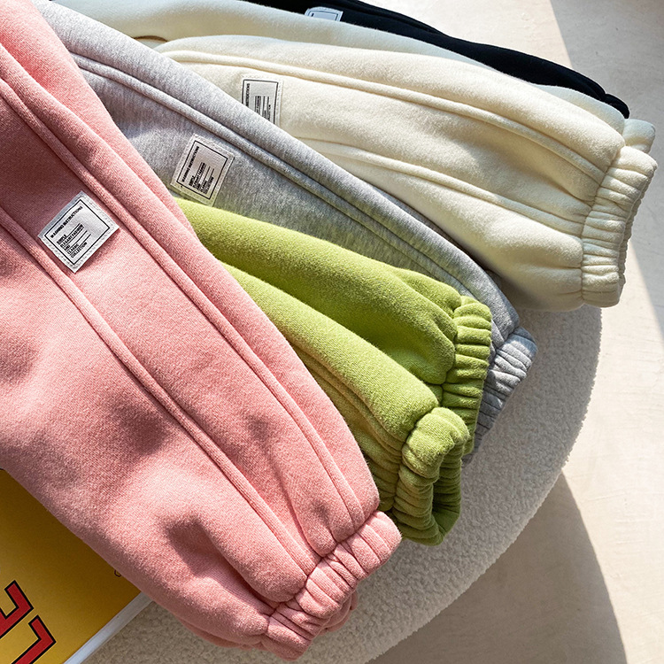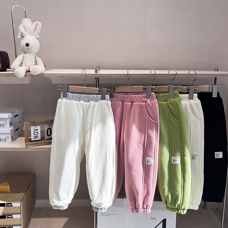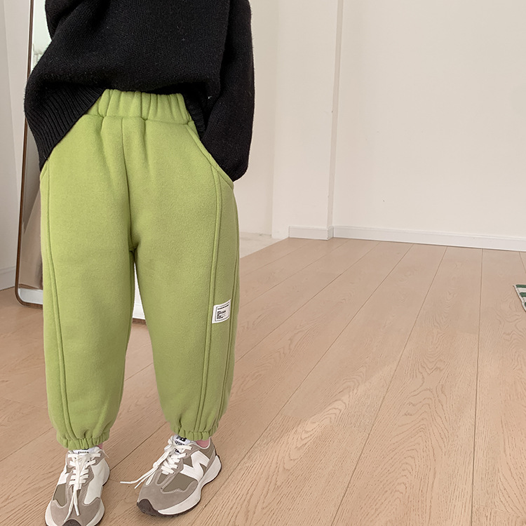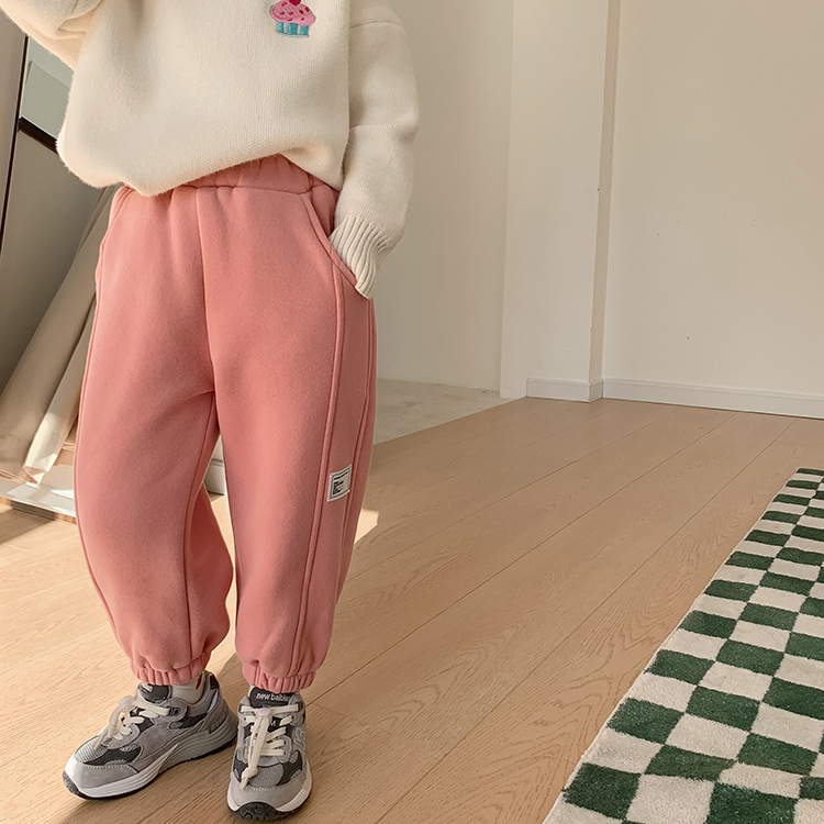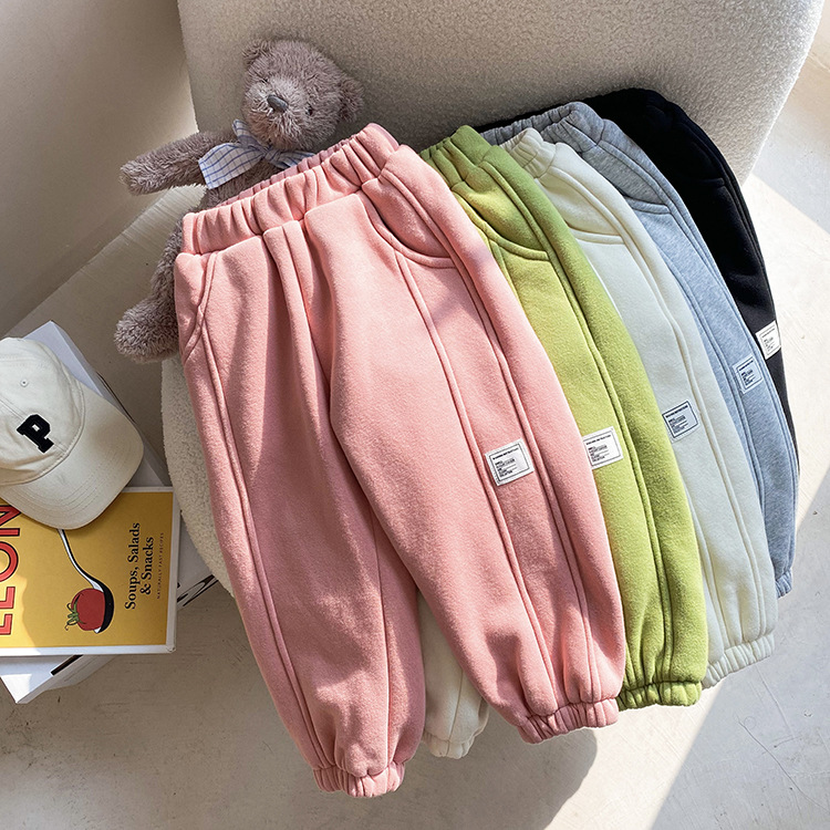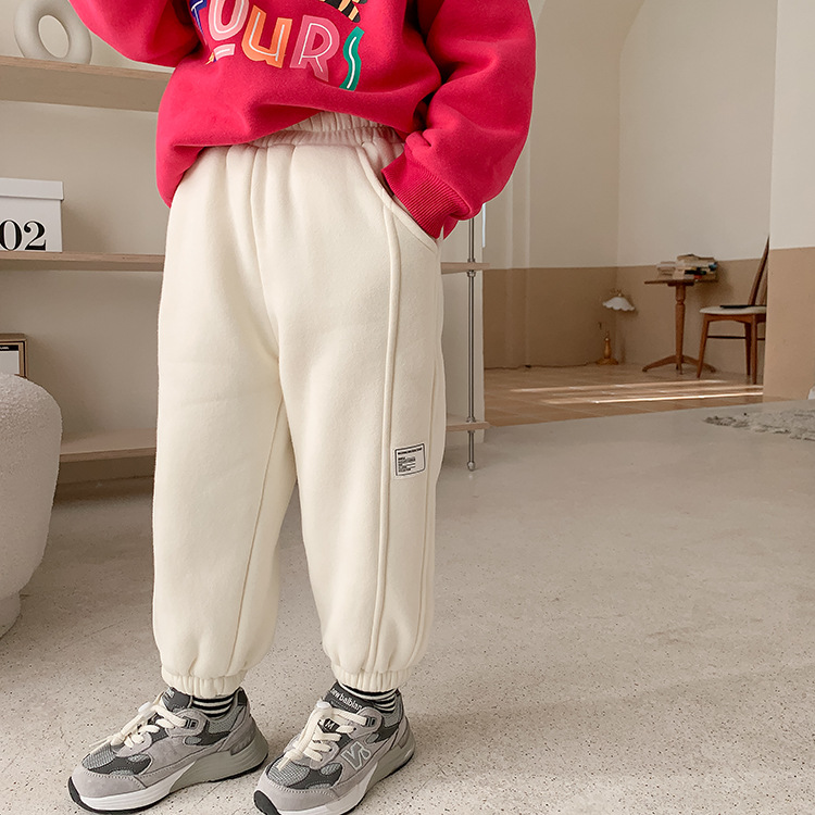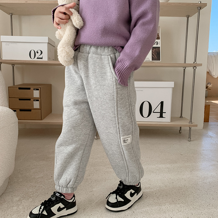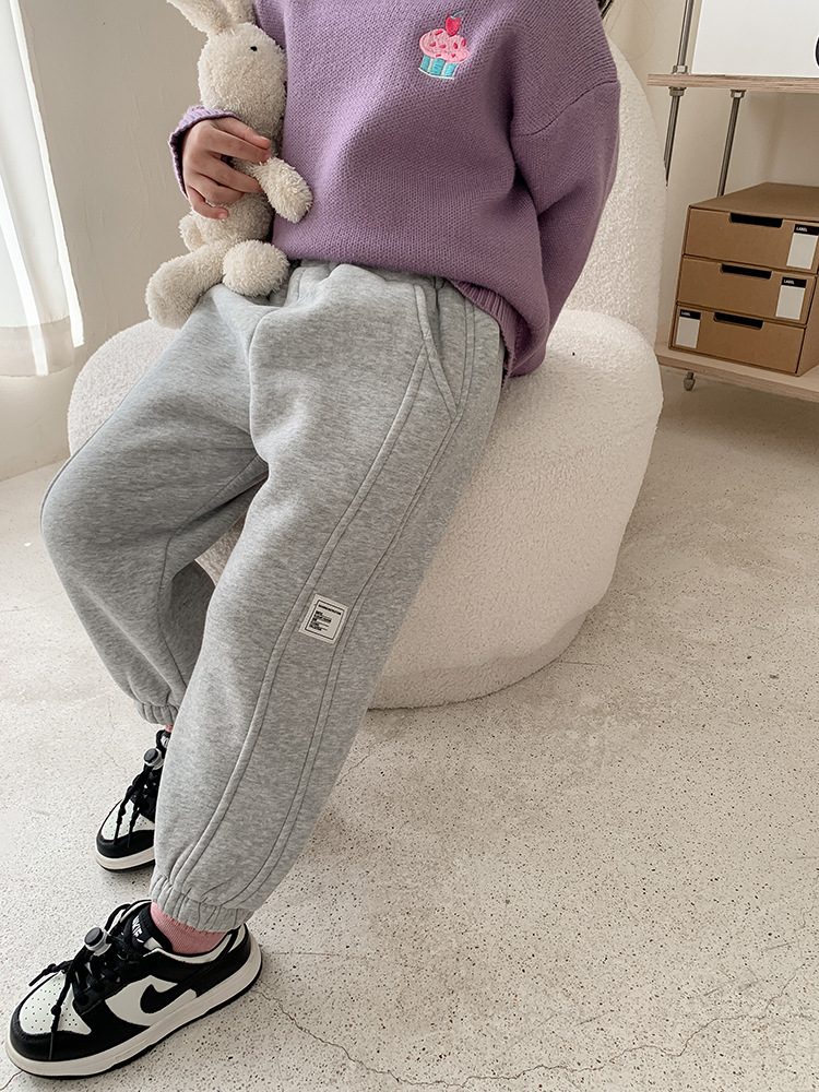 Children's Label Stitching Plus Velvet Sweatpants
