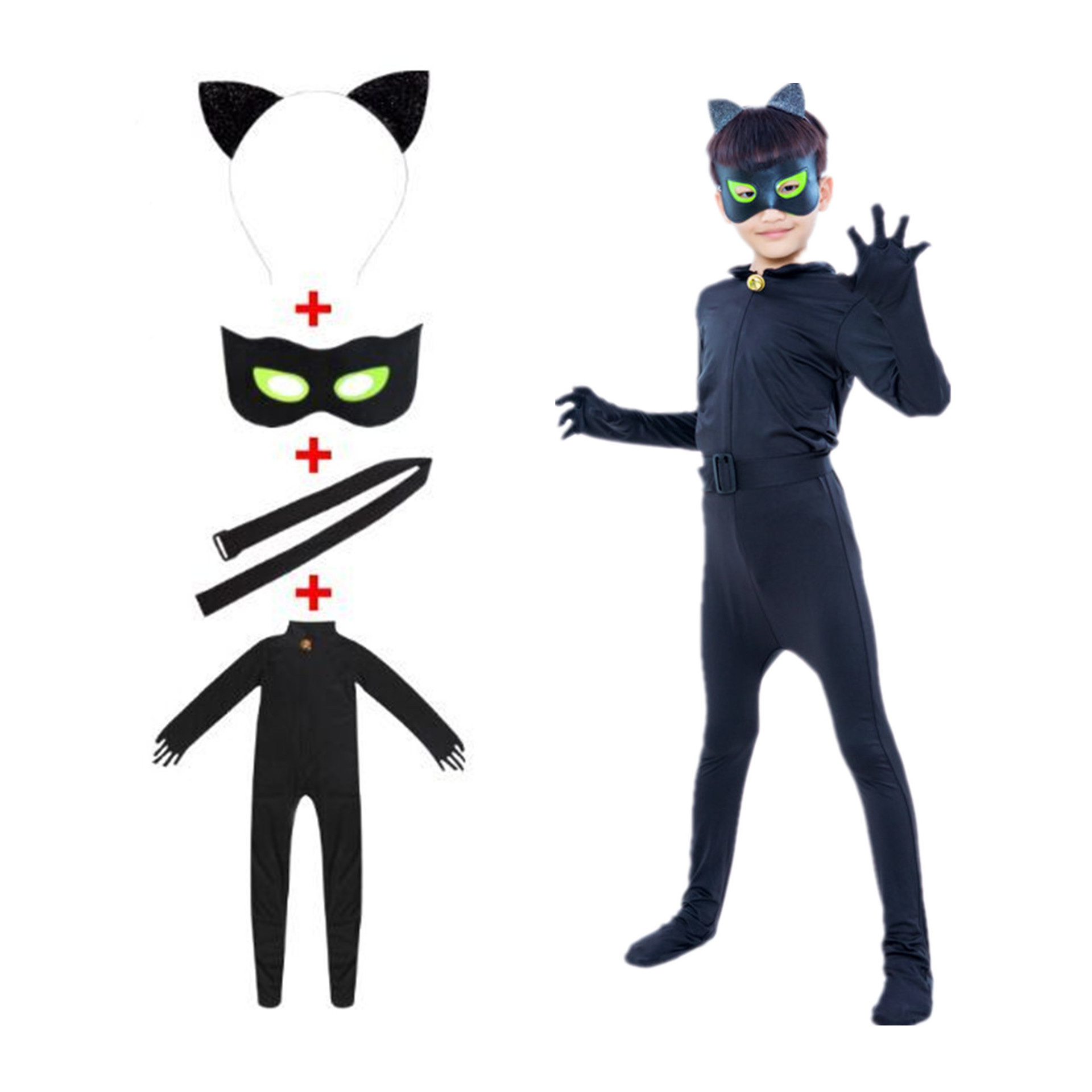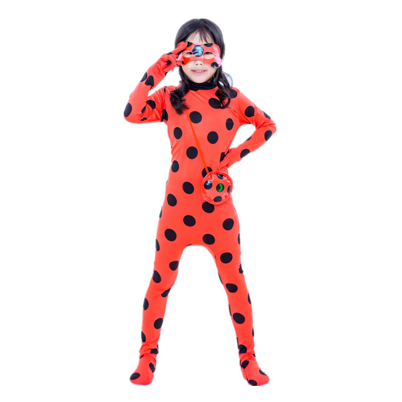 Color: ladybug clothing bag eye mask, black cat suit, ladybug wig