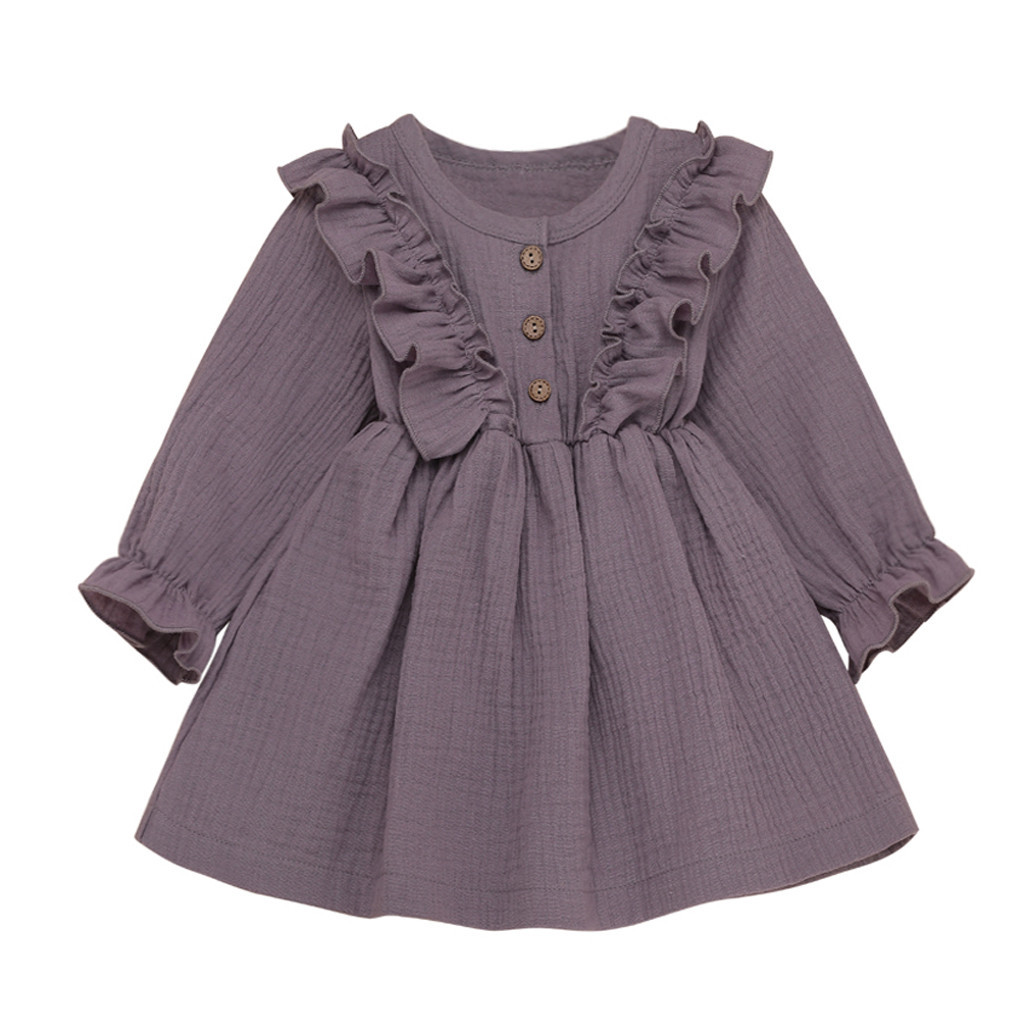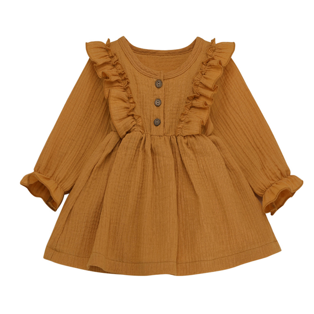 Toddler kid baby girl solid linen buttons ruffled princess evening dress costume