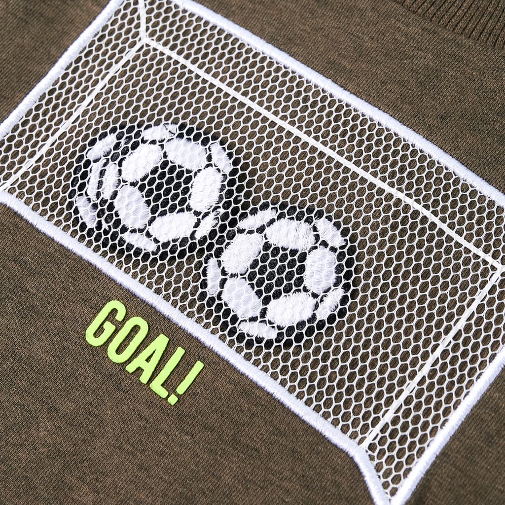 Description: Our clothing line includes affordable, high-quality, and durable everyday wear for children aged 1.5 to 10 years. Our range includes jackets, sweaters, shirts, and much more, available in various styles, sizes, and colors. To meet the high quality standards in the market, we use premium materials and advanced manufacturing techniques. This children's T-shirt has long sleeves, a crew neck, and a straight fit. The khaki melange T-shirt features a football goal print. Made from 80% cotton and 20% viscose, this long-sleeved shirt has been treated with a silicone and enzyme wash, resulting in a very soft and comfortable feel. This makes it easy to find the right size for your child. Properties: