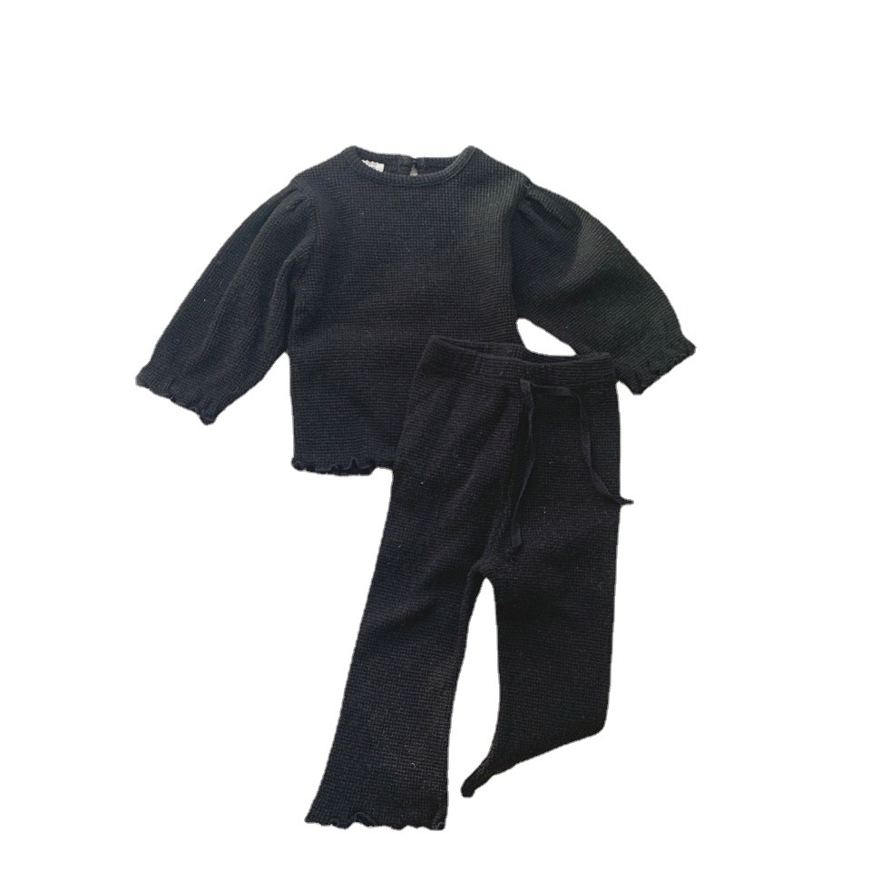 Children's Long-sleeved T-shirt Wave Curling Bell-bottom Pants Suit