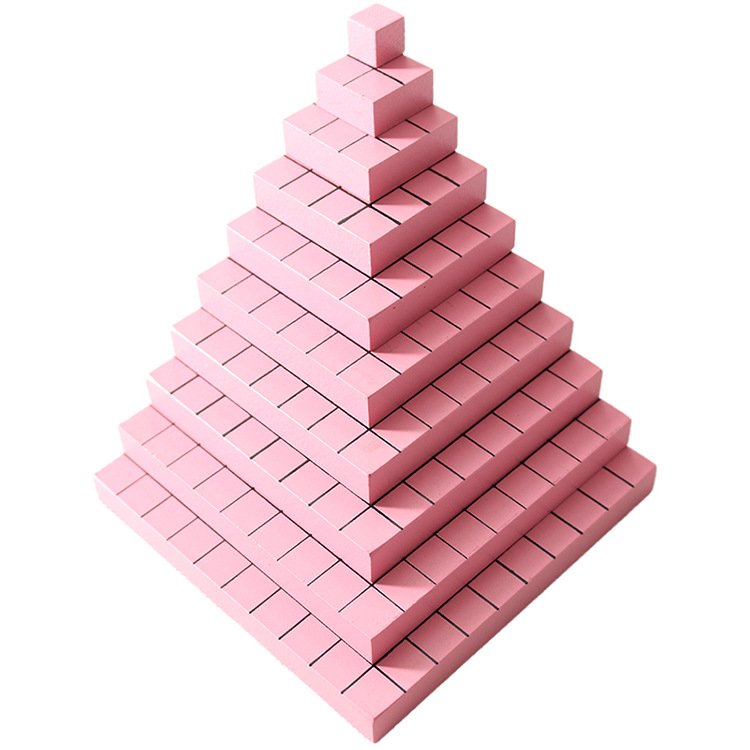 Montessori Math Teaching Aid - Pink Wooden Cube Tower Blocks