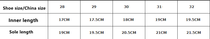 Size 28 / inner length 17cm, 29 size / inner length 17.5cm, 30 size / inner length 18cm, 31 size / inner length 19m, 32 size / inner length 19.5cm