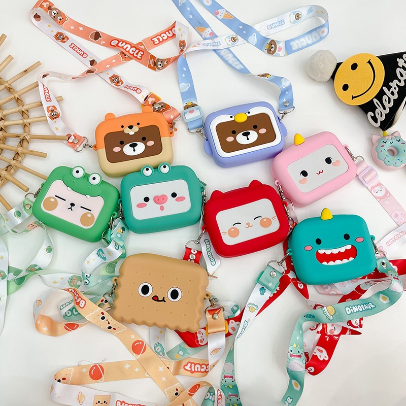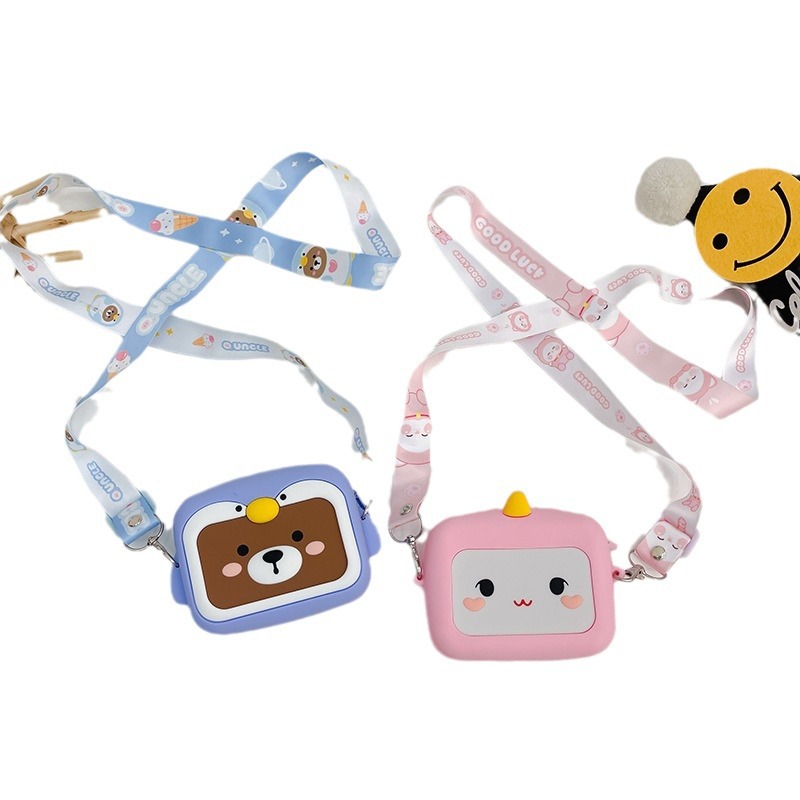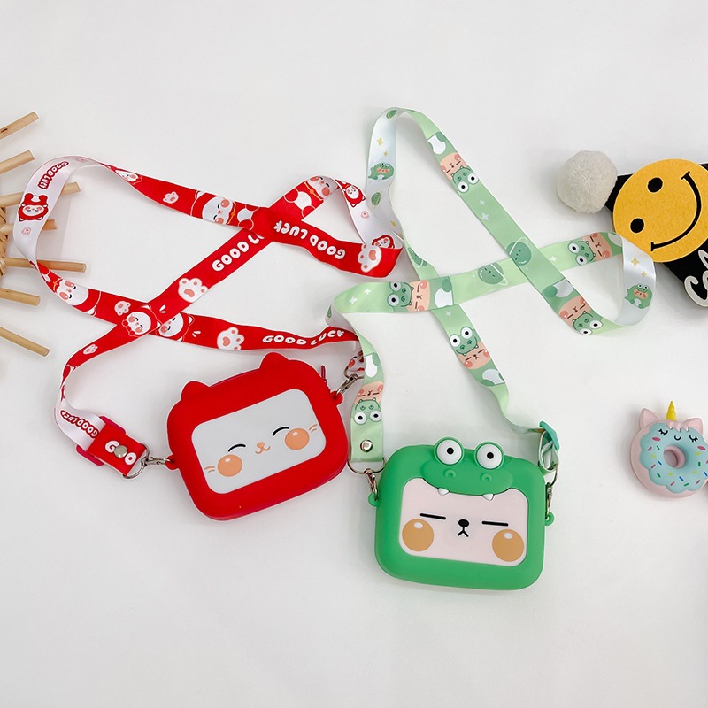 Color: smiley dinosaur square bag shoulder strap, biscuit square bag shoulder strap, crocodile square bag shoulder strap, frog square bag shoulder strap, pink unicorn square bag shoulder strap, red lucky cat square bag shoulder strap, Penguin square bag shoulder strap, Fox bear square bag shoulder strap