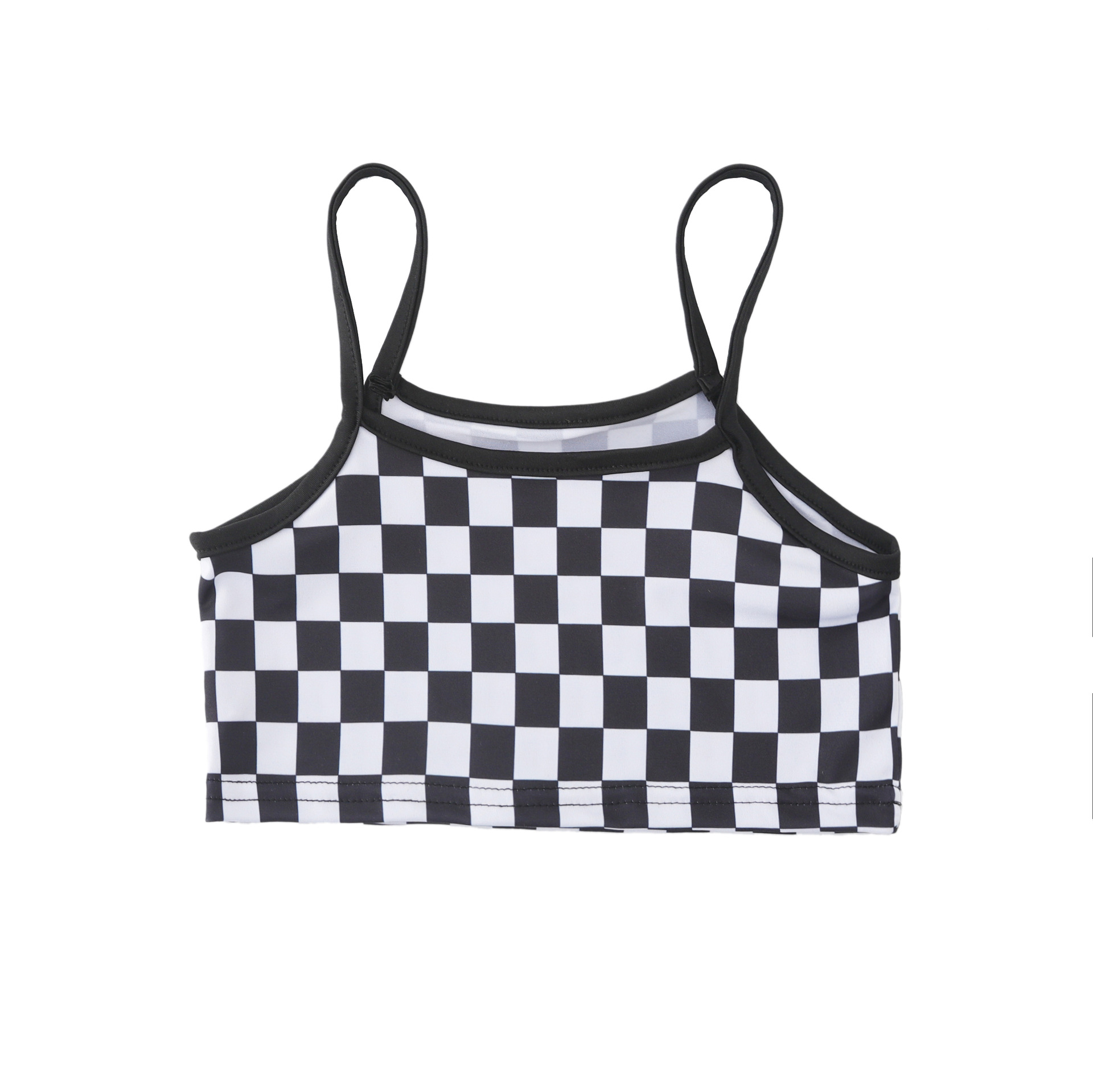 Color: 263 black hooded short sweater, 230 black and white grid suspenders, 184 comic trousers, 267 black and white grid bottoming shirt