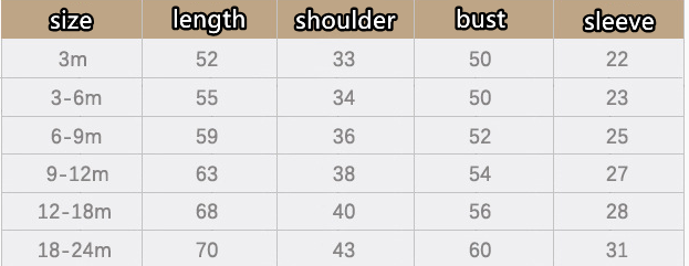 Suitable height: 3-6M/66cm, 6-12M/73cm, 12-18M/80cm, 18-24M/90cm