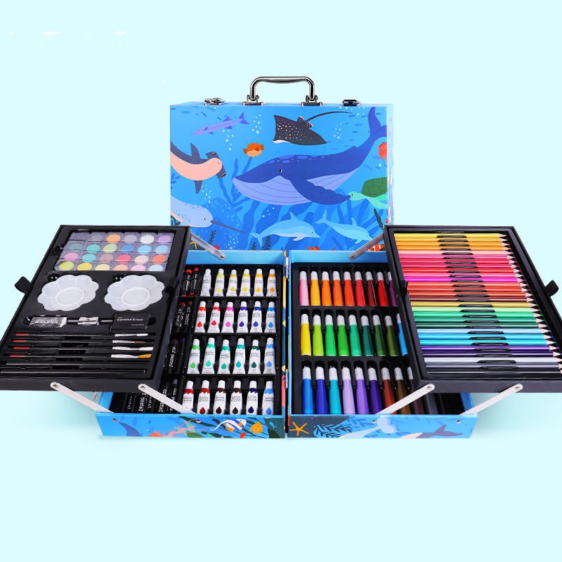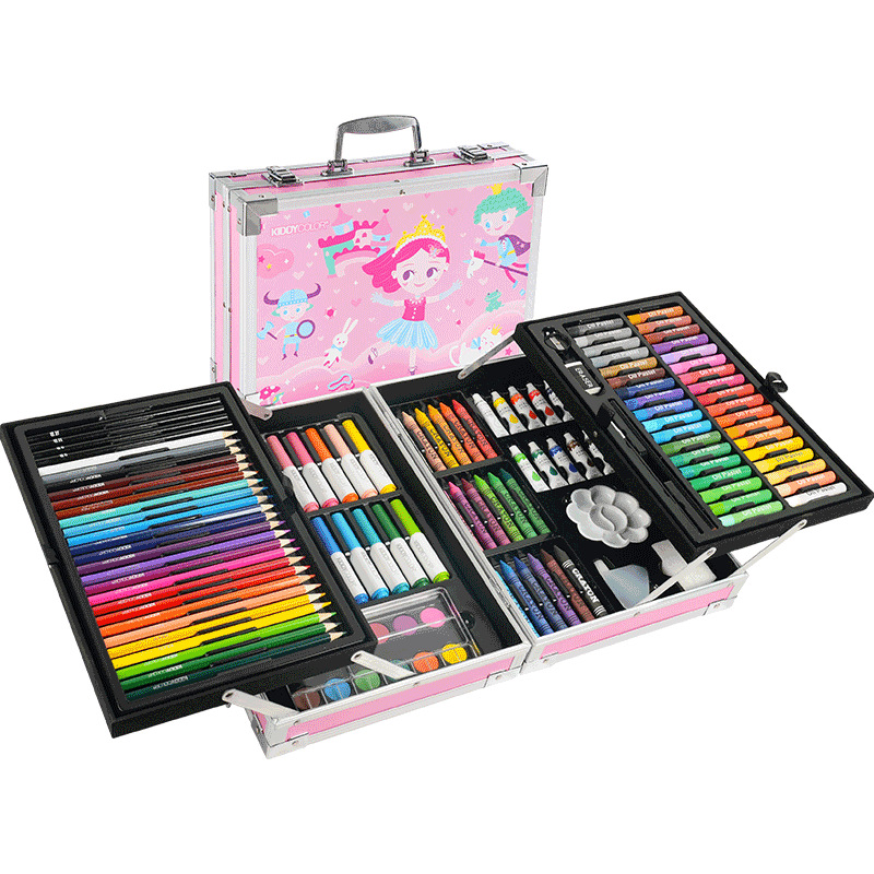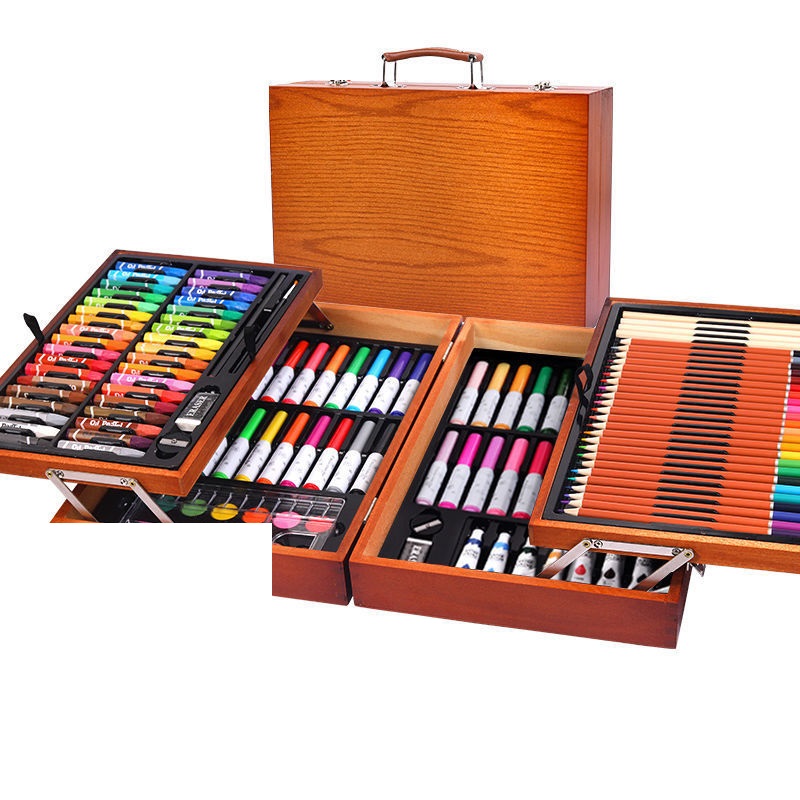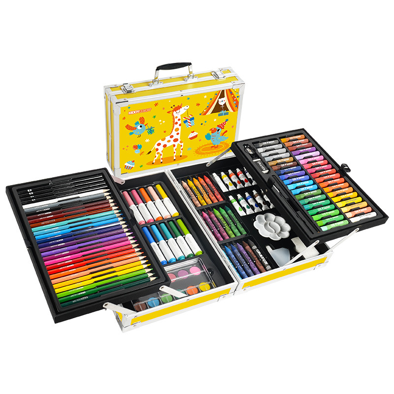 36-color oil pastels, 28-color water-soluble color pencils, 20-color watercolor pens, 18-color crayons, 12-color solid powder, 10-color acrylic paints, 2 palettes, 1 kettle, 1 sponge, 1 paintbrush, 1 1 pencil, 1 eraser, 1 sharpener