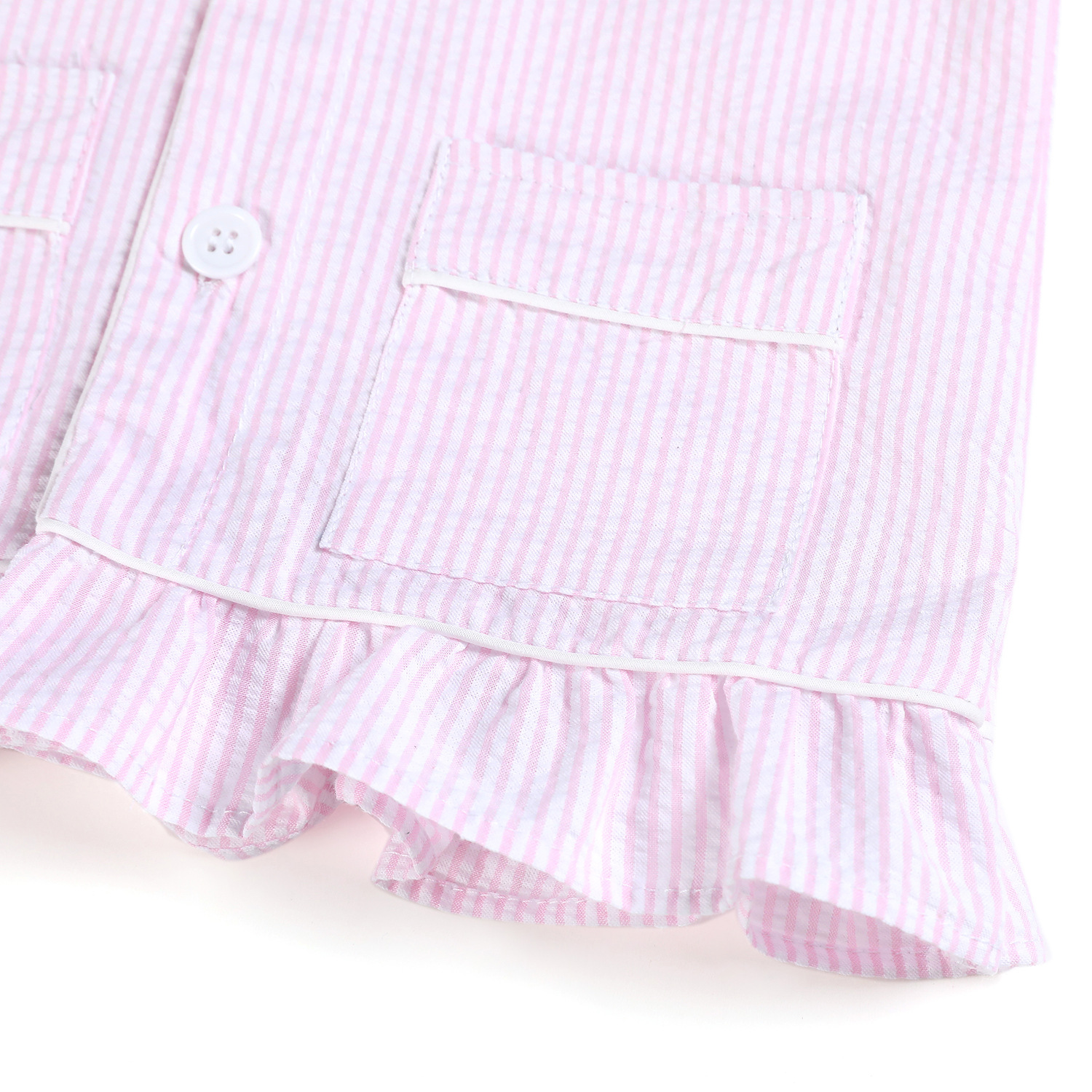 Color: Seersucker pink women's short, seersucker blue men's short, seersucker pink women's long, seersucker blue men's long