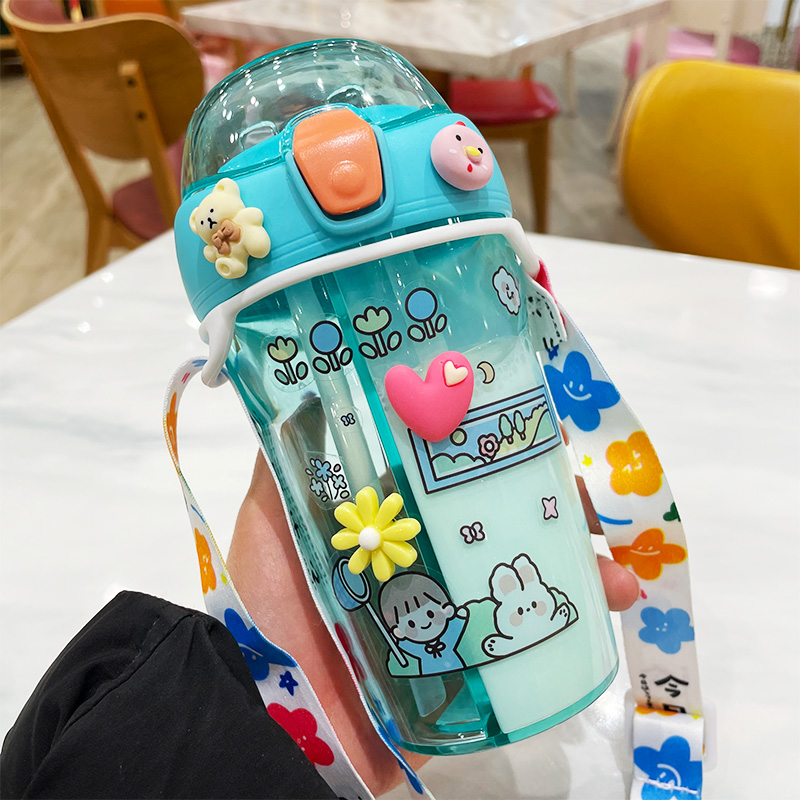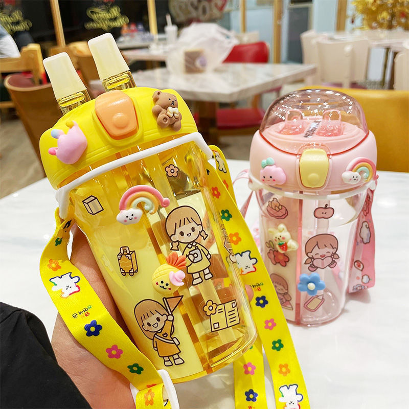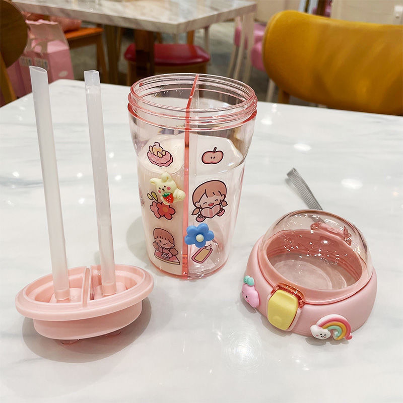 Color: capacity pink double drinking cup 430ml (with rope), purple double drinking cup 430ml (with rope), yellow double drinking cup 430ml (with rope), blue double drinking cup 430ml (with rope)
