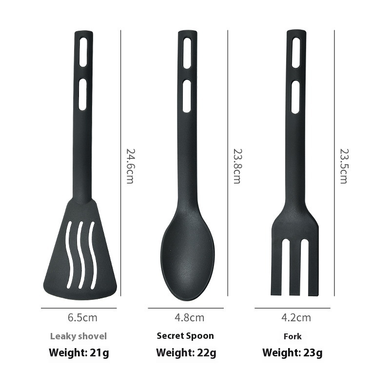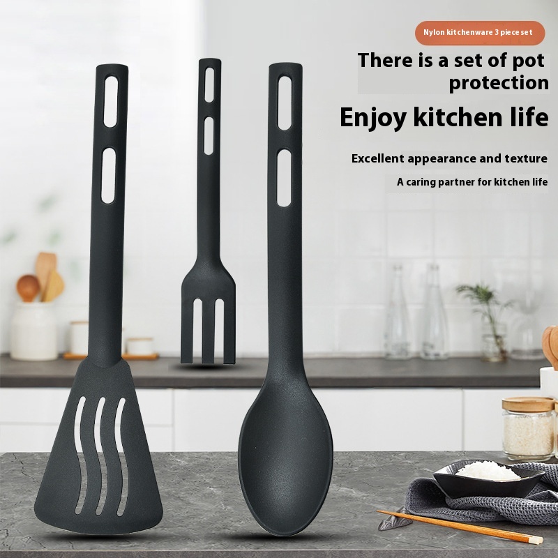 Size: nylon kitchenware set of 3 (simple pp bag), slotted turner, dense spoon, noodle fork