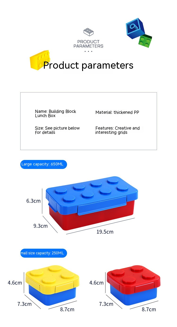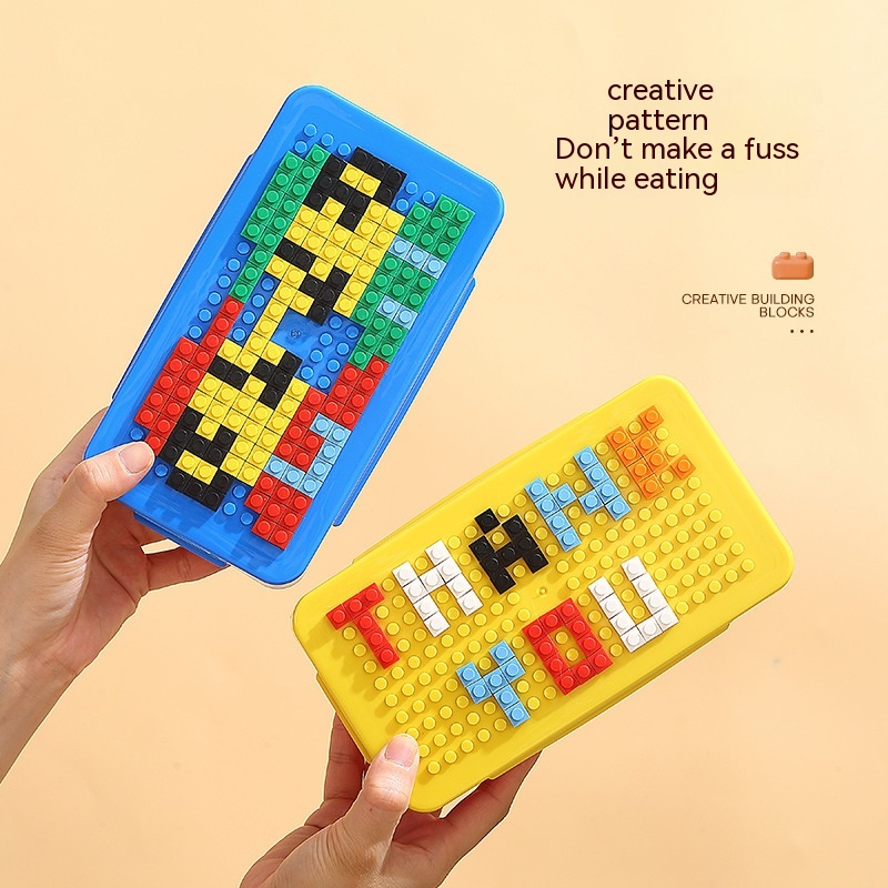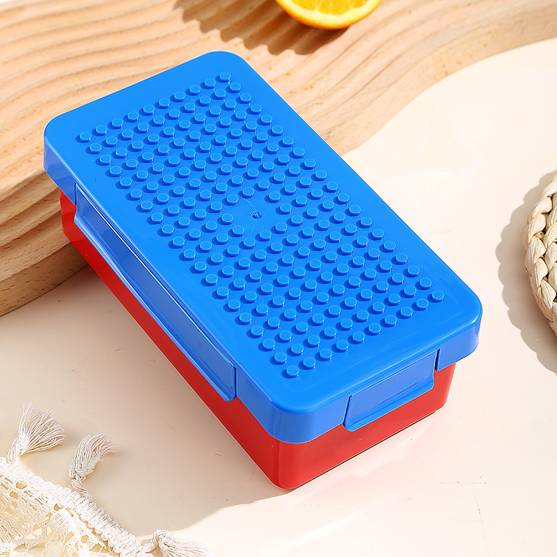 Children's Rectangular Lunch Box With Plastic Building Blocks