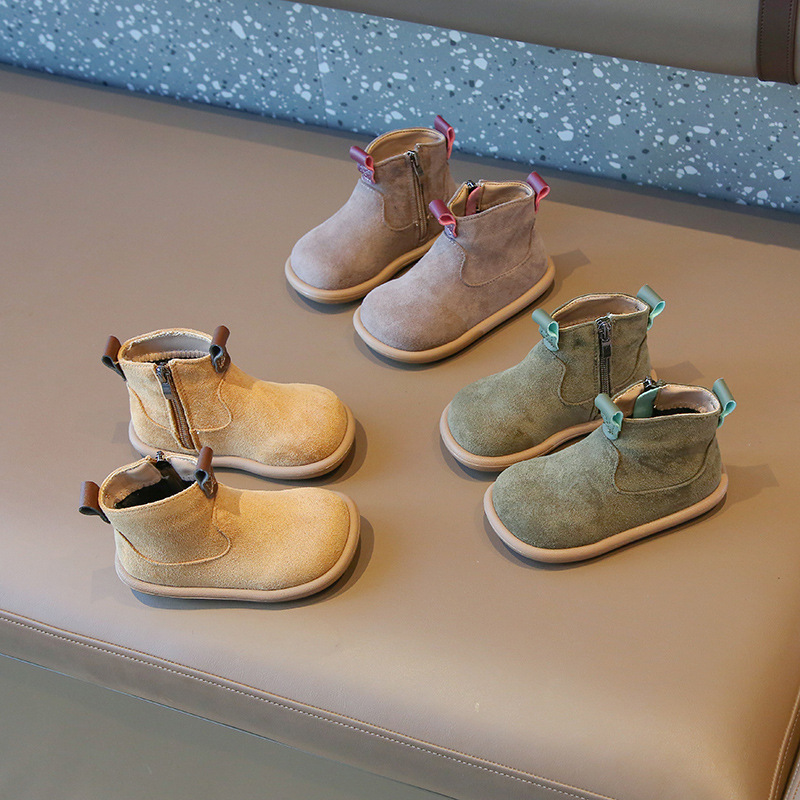 Children's Retro Solid Color British Style Cotton Boots