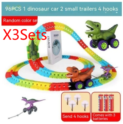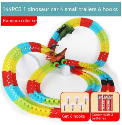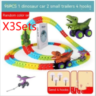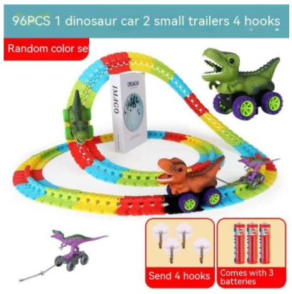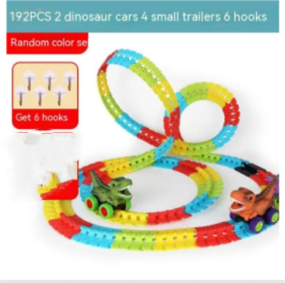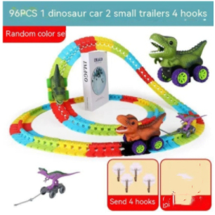 Color: 96 Track 1 dinosaur car 2 small trailers 4 hooks, 144 Track 1 dinosaur car 4 small trailers 6 hooks, 192 Track 2 Dinosaur Cars 4 small trailers 6 hooks, 96 track pieces big yellow duck 2 small trailers 4 hooks, 144 Track 1 big yellow duck 4 small trailers 6 hooks, 192 Track 2 big yellow duck 4 small trailers 6 hooks, dinosaur car [1]],[2] Dinosaur trailer, big yellow duck [1],[2] Yellow Duck small trailer, 24 tracks [1 pack], a set of bracket