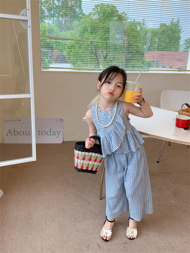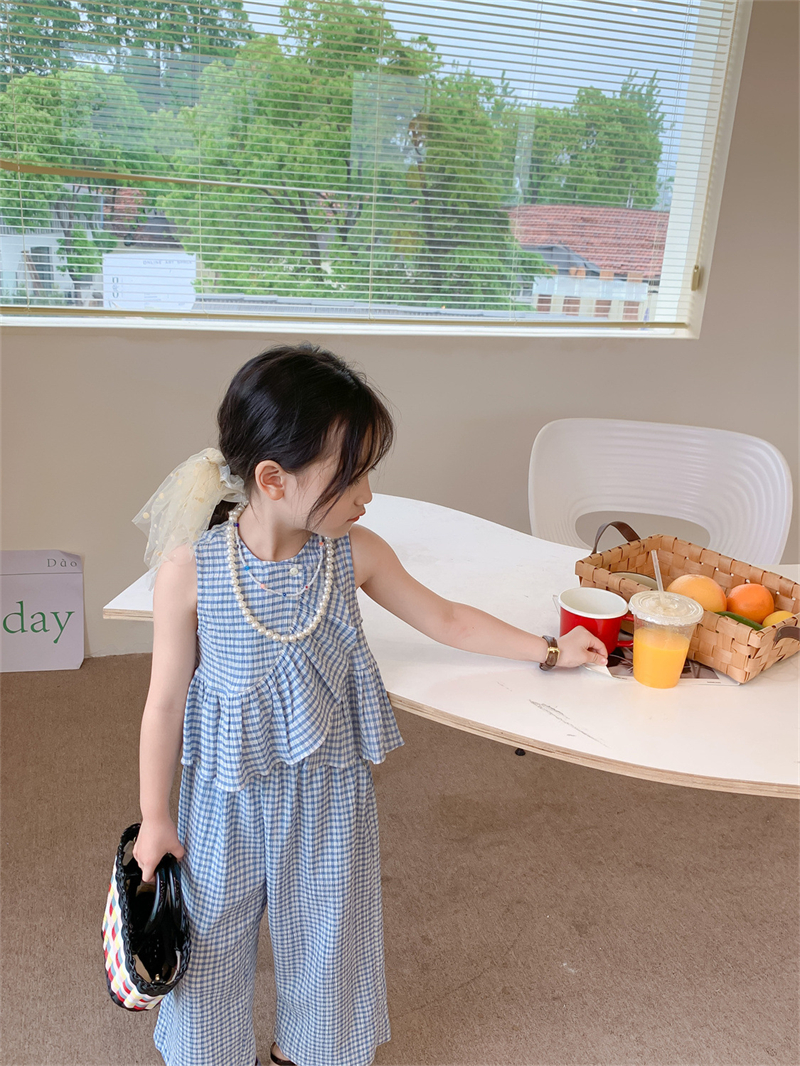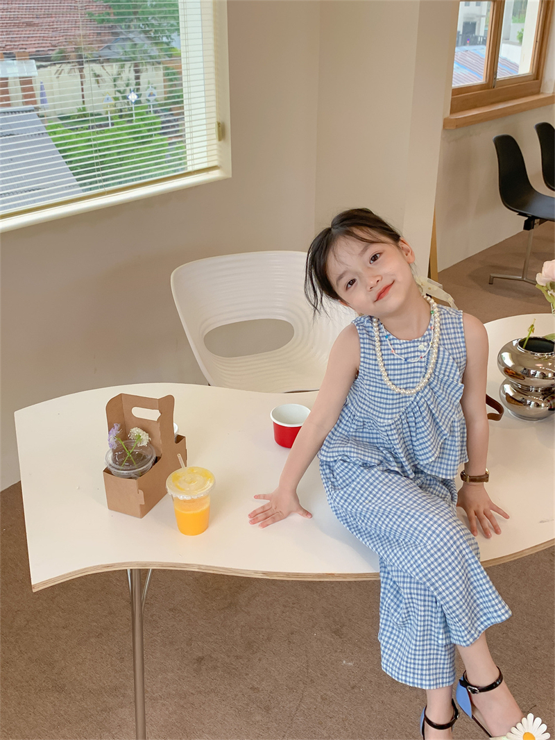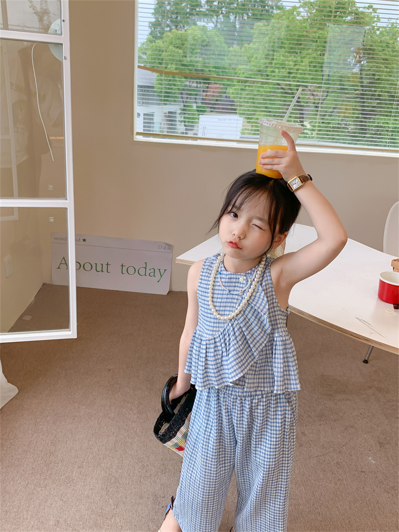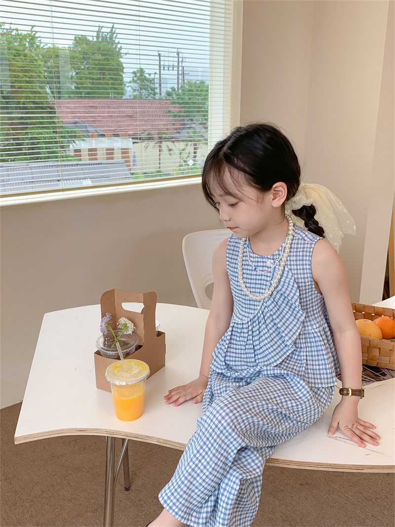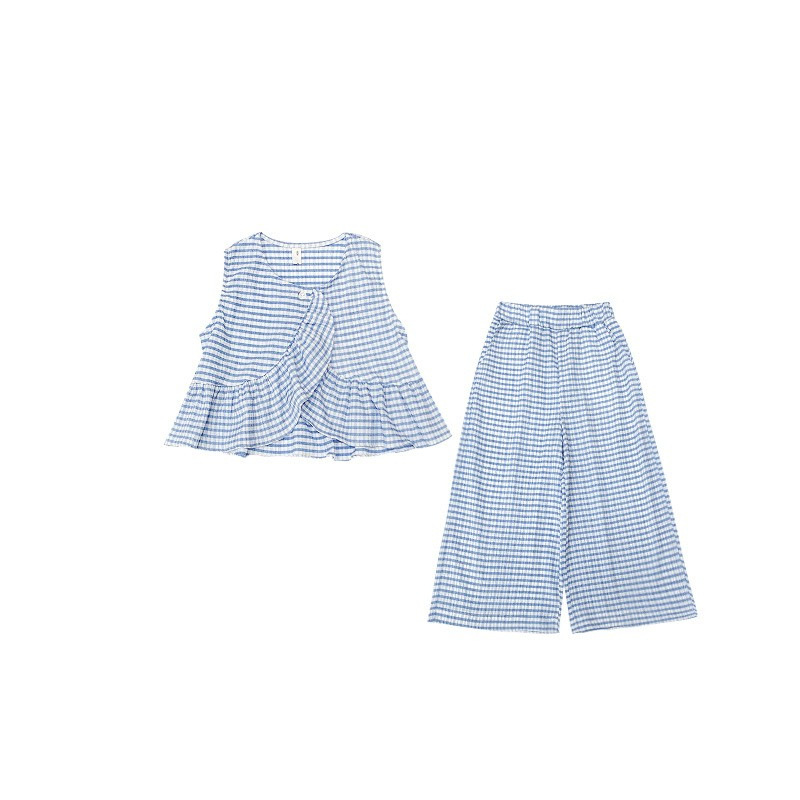 Color: blue plaid camisole trousers suit