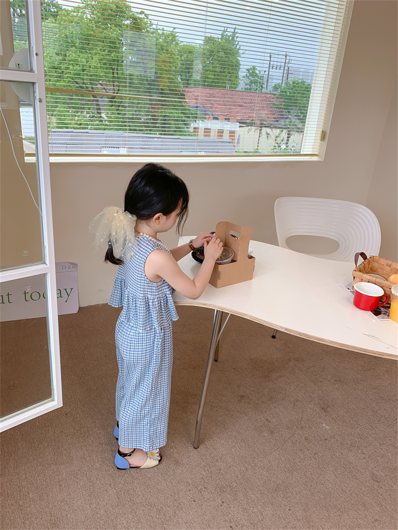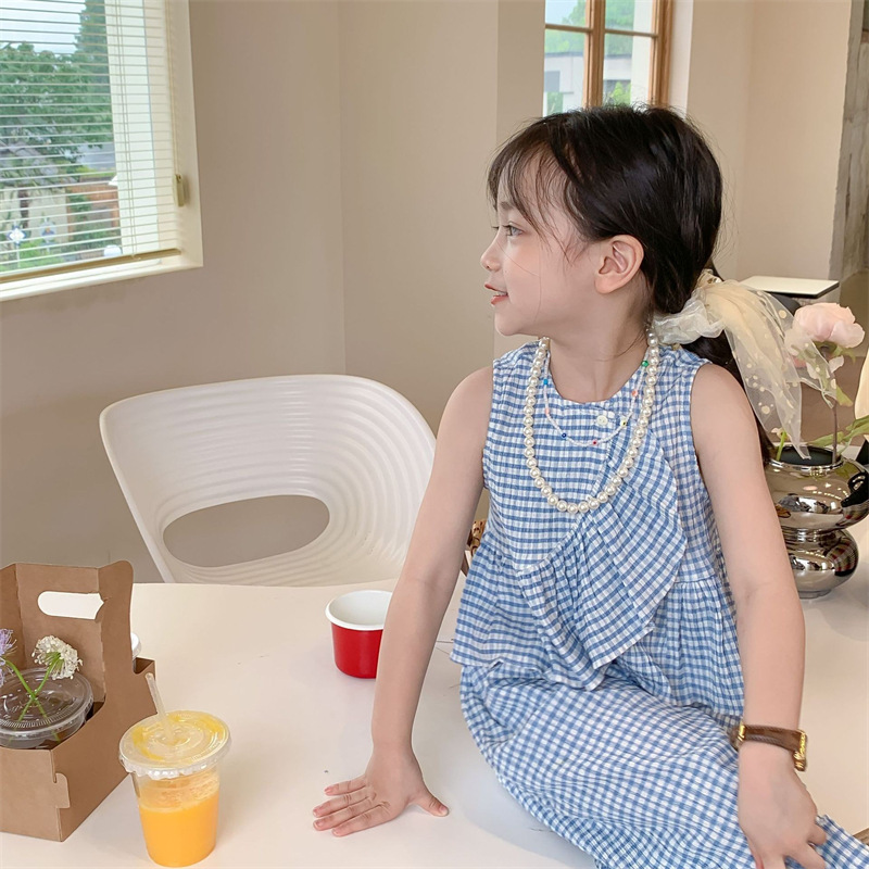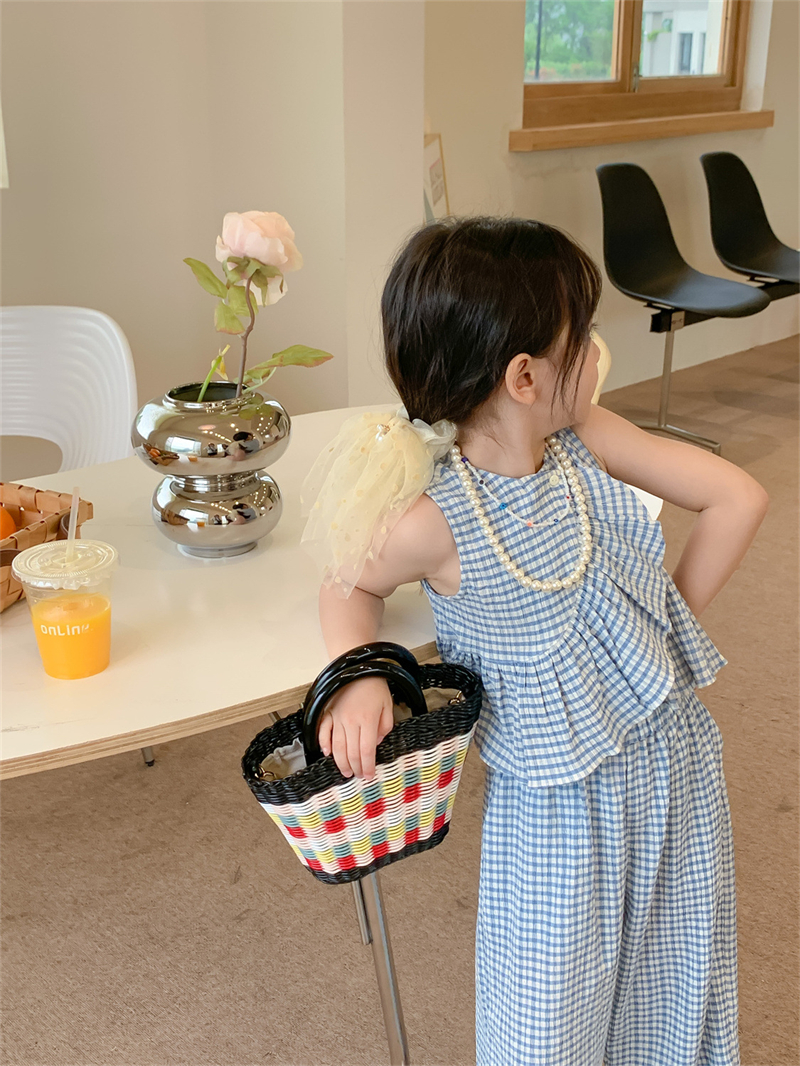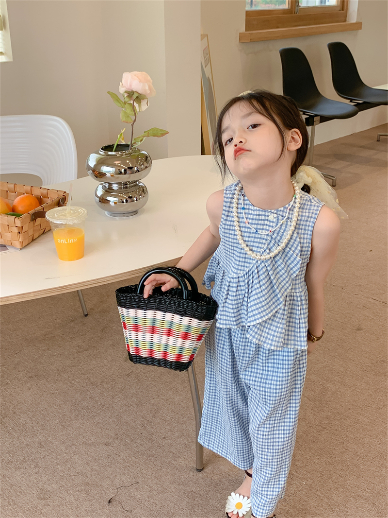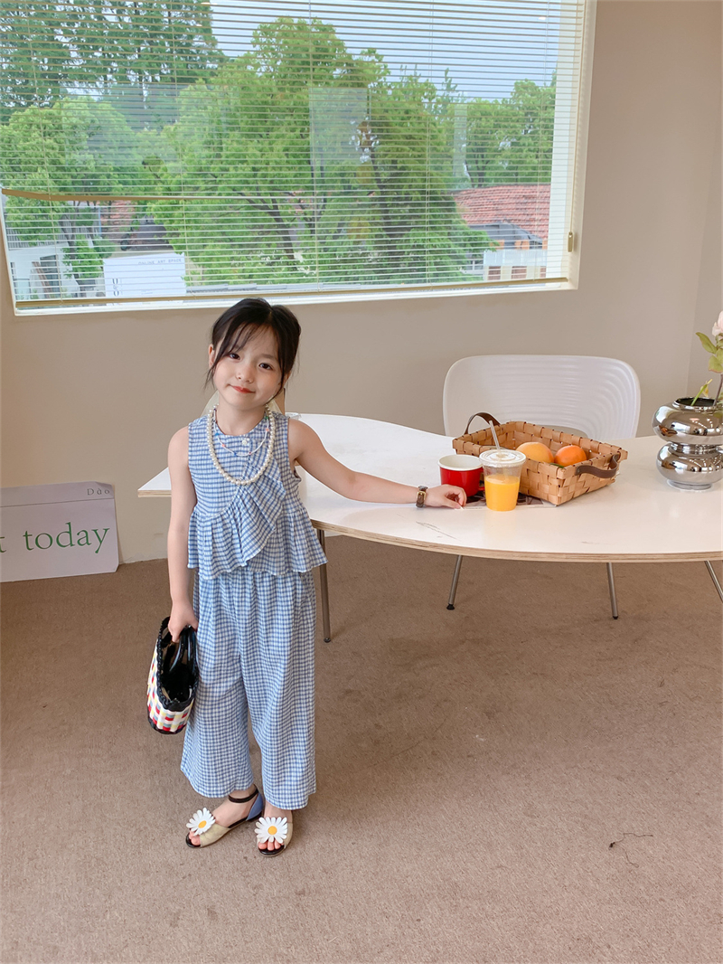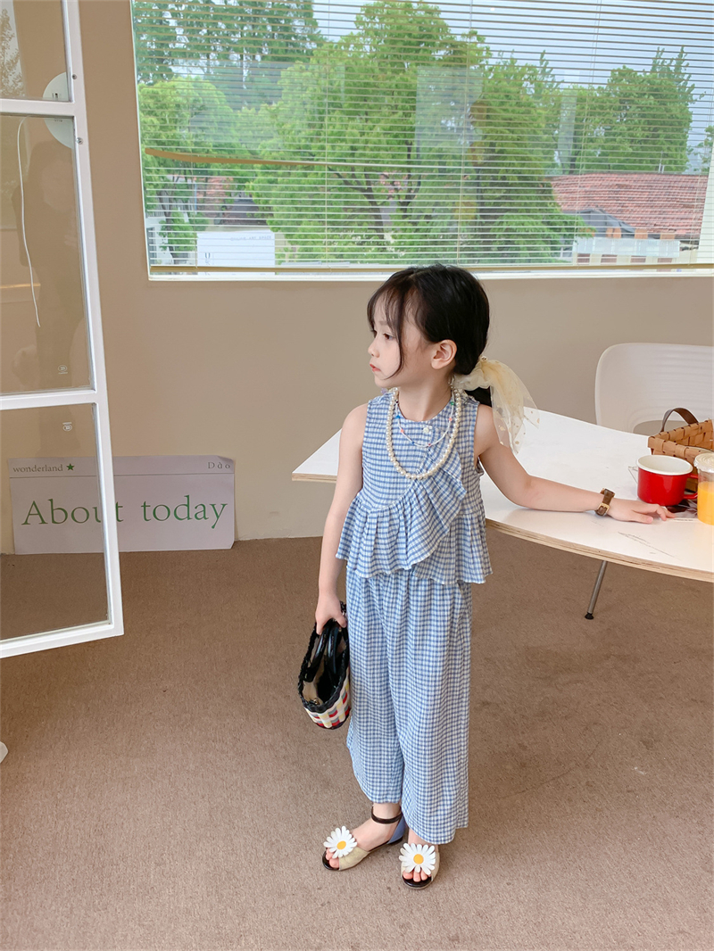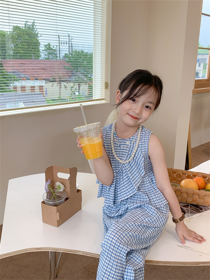 Color: blue plaid camisole trousers suit