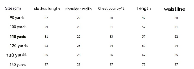 Suitable height: Tag 90 is suitable for 90cm, tag 100 is suitable for 100cm, tag 110 is suitable for 110cm, tag 120 is suitable for 120cm, tag 130 is suitable for 130cm, tag 140 is suitable for 140cm