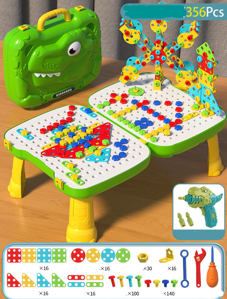 Color: Dinosaur Screw Table - 356 Pieces Electric Drill Version