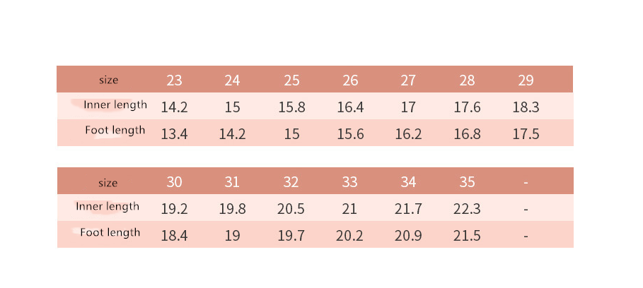 Size: 23, 24, 25, 26, 27, 28, 29, 30, 31, 32, 33, 34, 35, 36, 37
